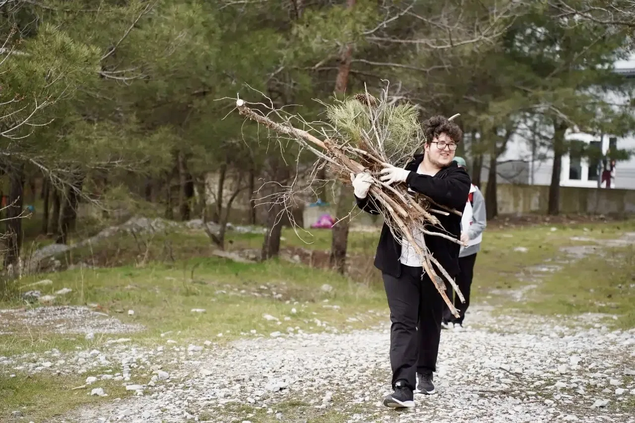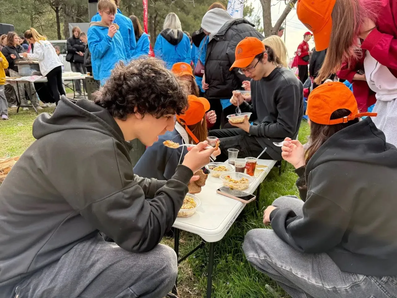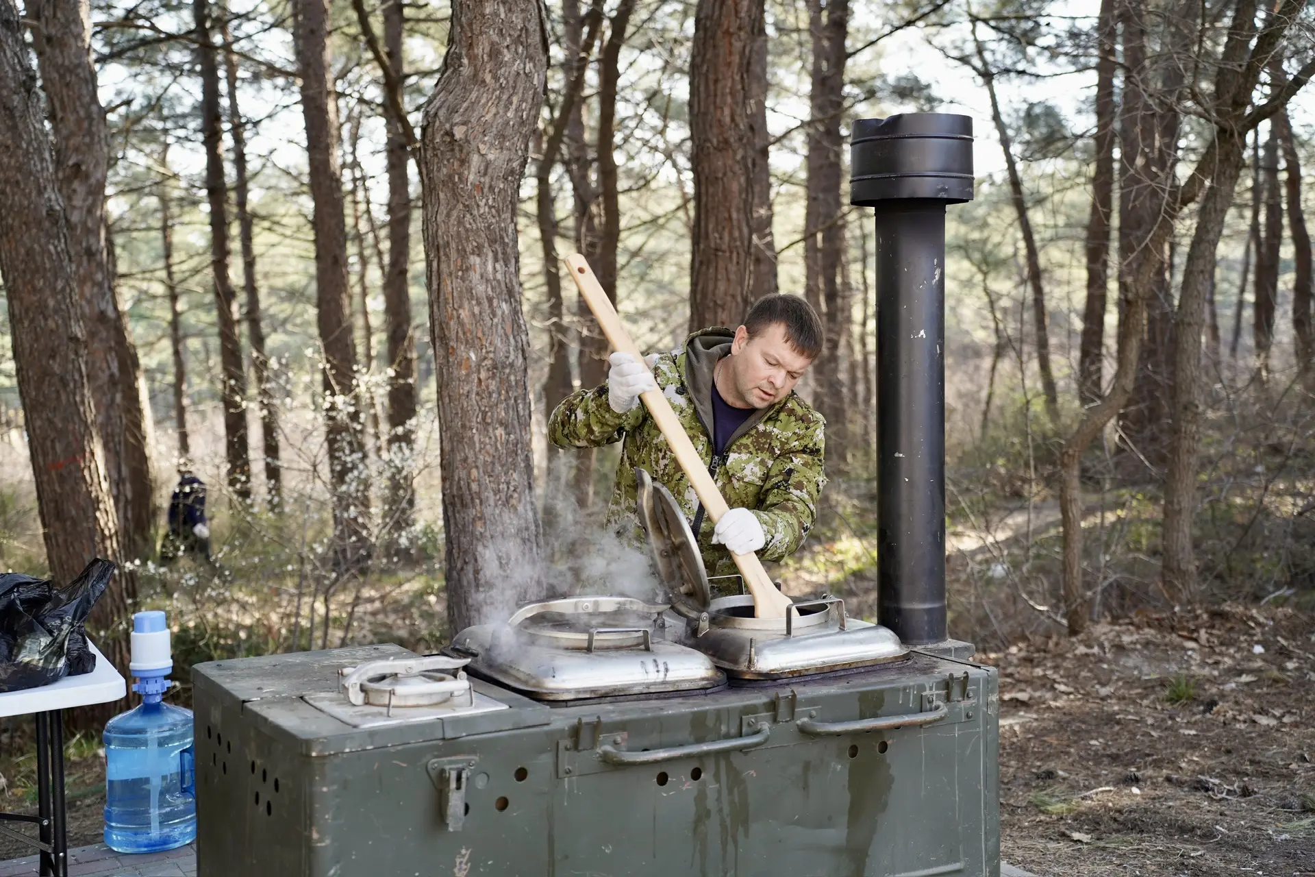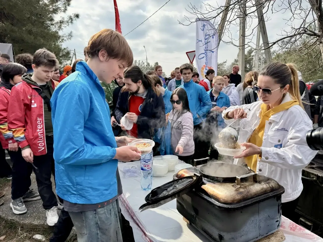На каждой точке проведения уборки участникам выдали необходимый инвентарь. Работа идёт дружно, с хорошим настроением. Участникам приготовили кашу и горячий чай.