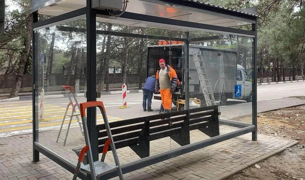 Продолжаем обновлять остановки общественного транспорта в Геленджике. Всего монтируем 10 новых павильонов, в первую очередь возле социальных объектов.