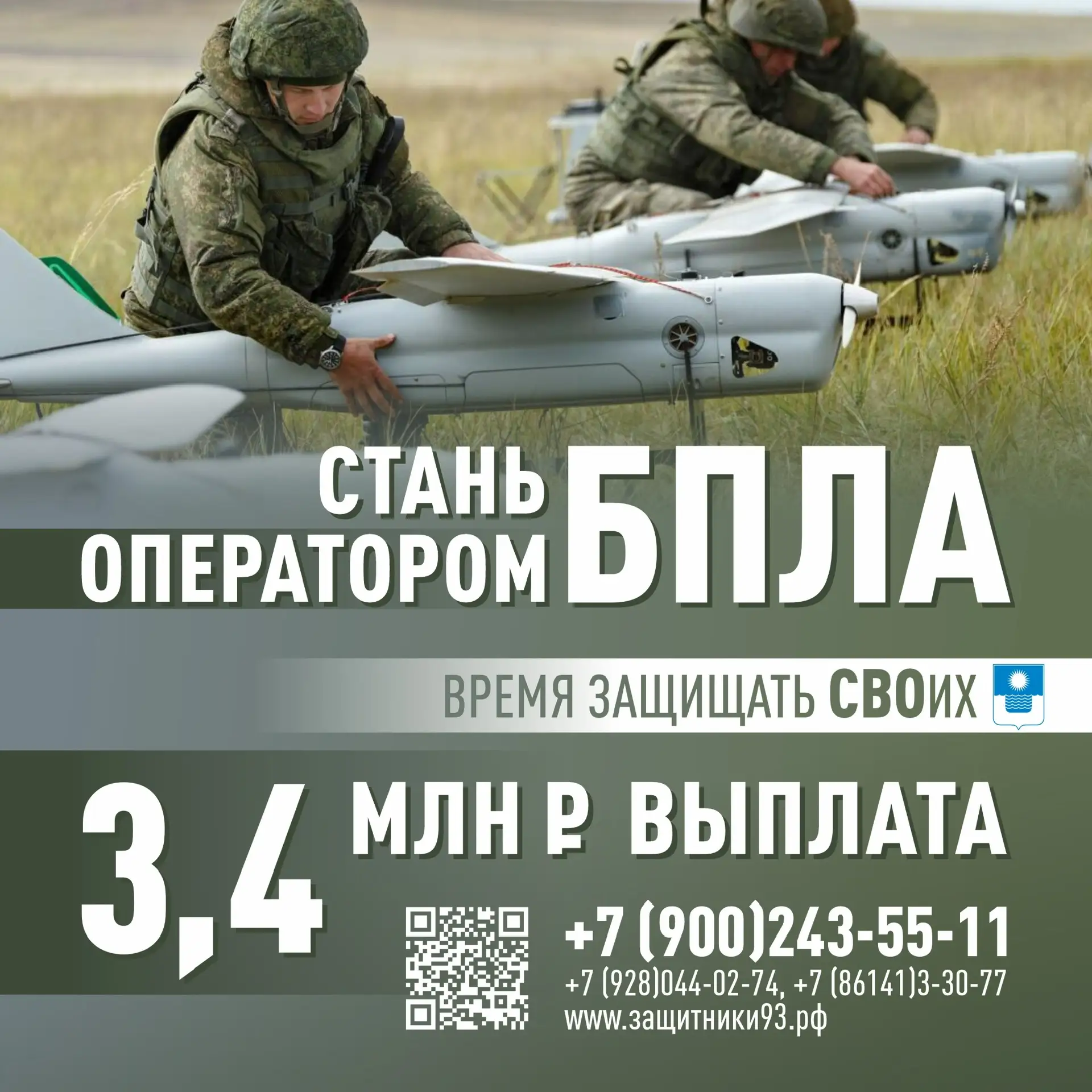 Отдельно хочу обратить внимание на одно из направлений. Министерство обороны предлагает контракт на год для тех, кто готов служить в войсках беспилотных систем. Единовременная выплата составляет 3 400 000 рублей.