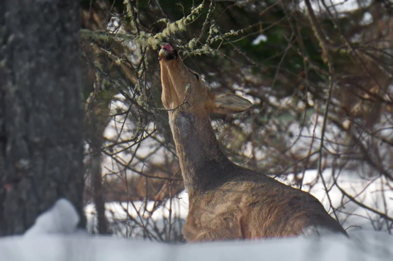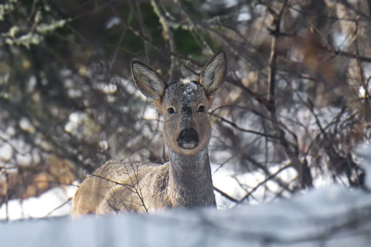 🦌Косуля за трапезой в зимнем лесу попалась в нацпарке «Шушенский бор»