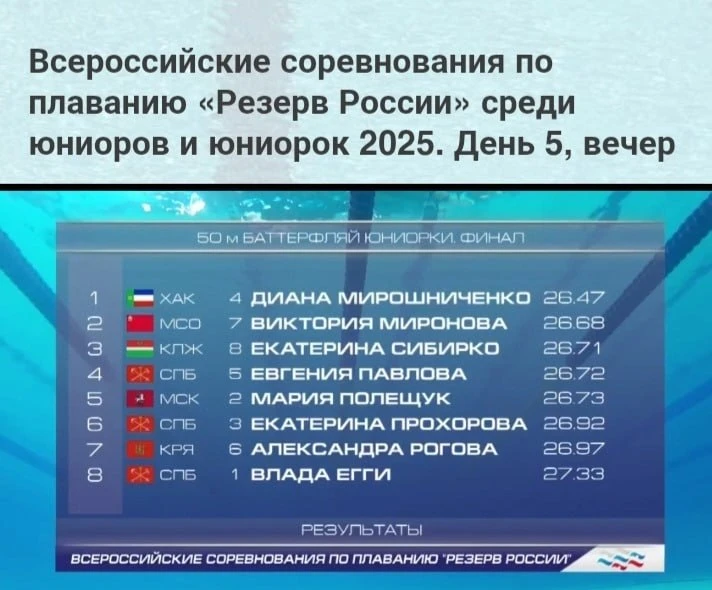 💪🏻🥇Золото едет в Хакасию: Диана Мирошниченко стала лучшей на всероссийских соревнованиях по плаванию «Резерв России»