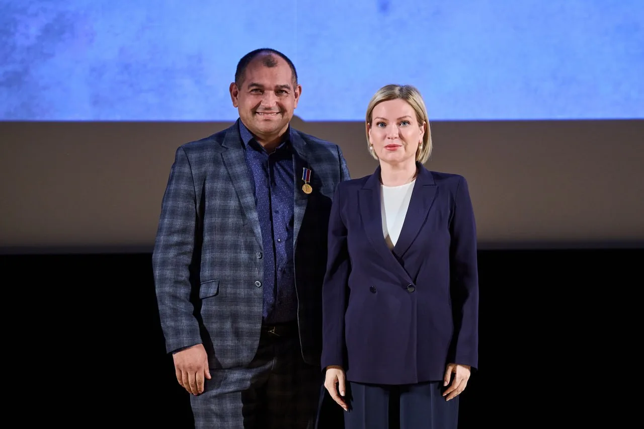 Высокая ведомственная награда вручена 35 культурным деятелям из разных уголков страны. В их числе наш земляк из Таштыпского района. Иван Шулбаев за время проведения спецоперации организовал более 20 благотворительных концертов в Хакасии и 40 - в зоне СВО. В столицу России Иван прибыл из очередной командировки, - рассказали в Минкультуры региона.