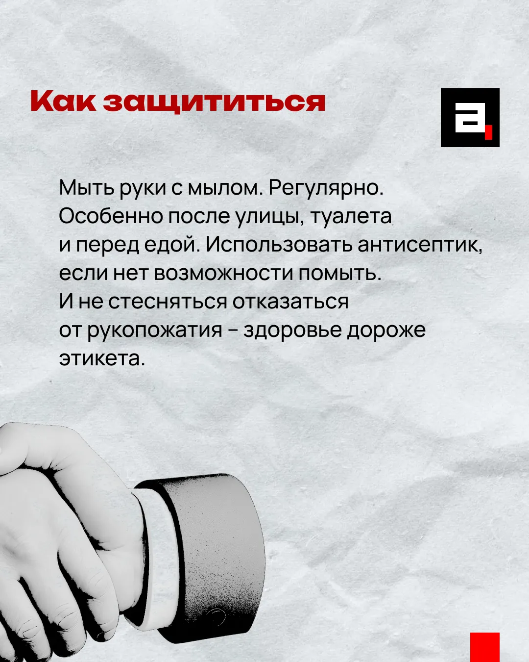 Через руки передаются и кишечные инфекции, и вирусные заболевания. Человек кашлянул в ладонь, потом пожал вам руку – и все, вы в группе риска. Особенно в общественных местах, где много людей касаются одних и тех же поверхностей.