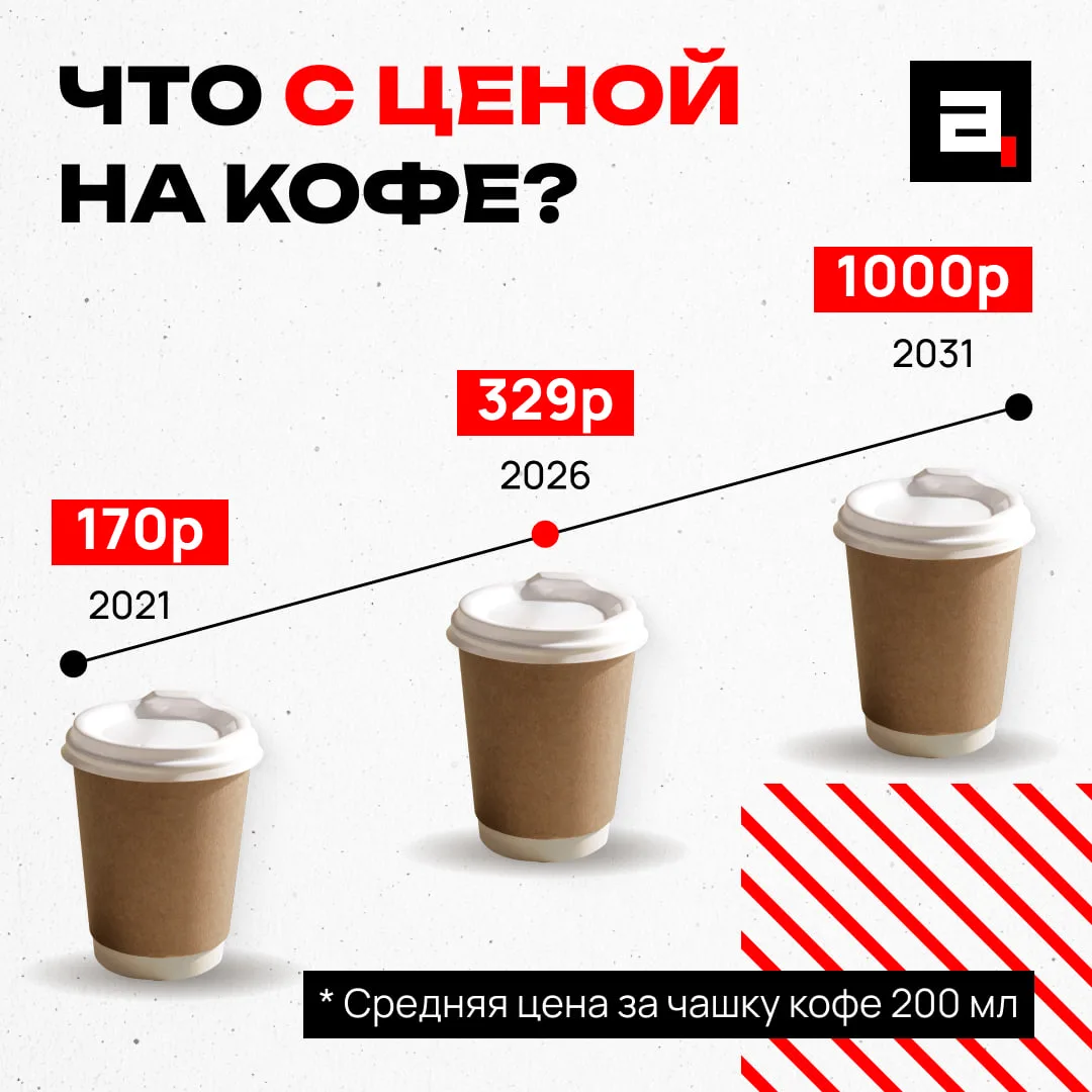 Урожай падает, издержки растут, кофейни будут закрываться. На графике наглядно показали путь от «нормально» до «сегодня без кофе».