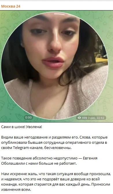 Евгения Оболашвили - всё... в Москве 24 написали, что кровожадную бабу уволили. Про ее коллегу не сказали ничего, может его не стали трогать.