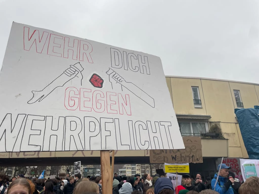 В 90 городах Германии одновременно проходят массовые акции школьников и студентов, которым не нравятся планы Бундестага по восстановлению армии с помощью возвращения обязательной службы.