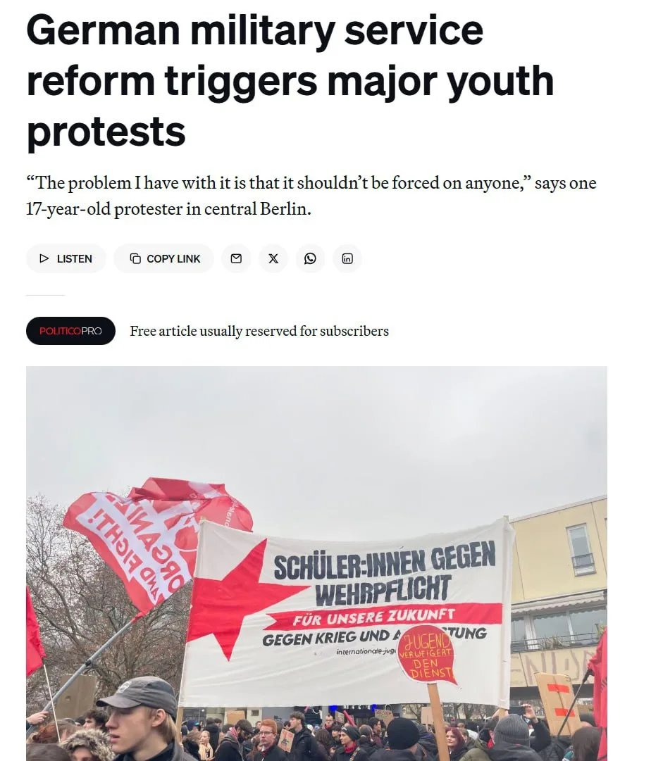 Немецкие пориджи устроили жёсткие протесты в Германии против возвращения обязательной службы в армии