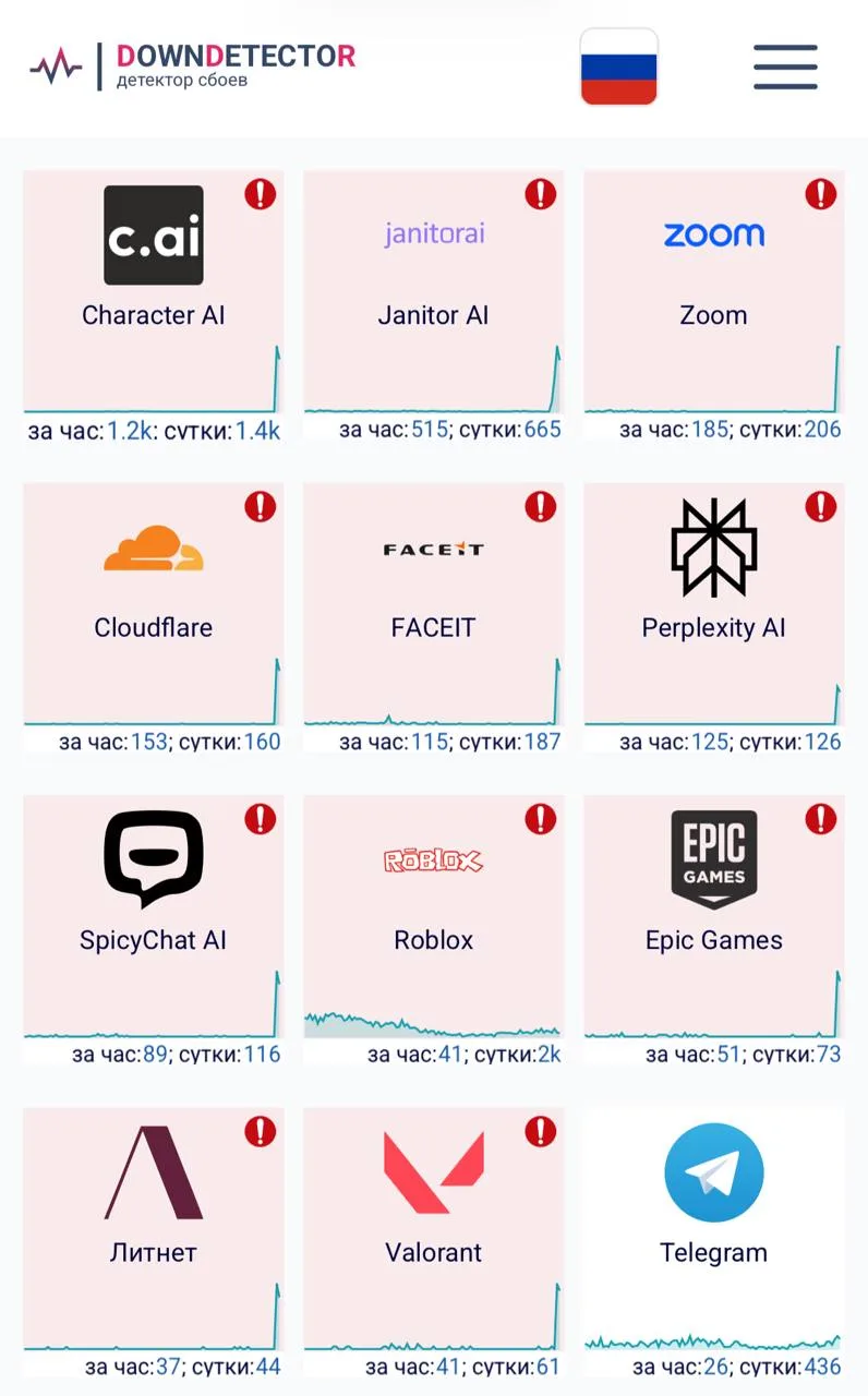 Cреди пострадавших оказался даже сервис проверки доступа downdetector.
