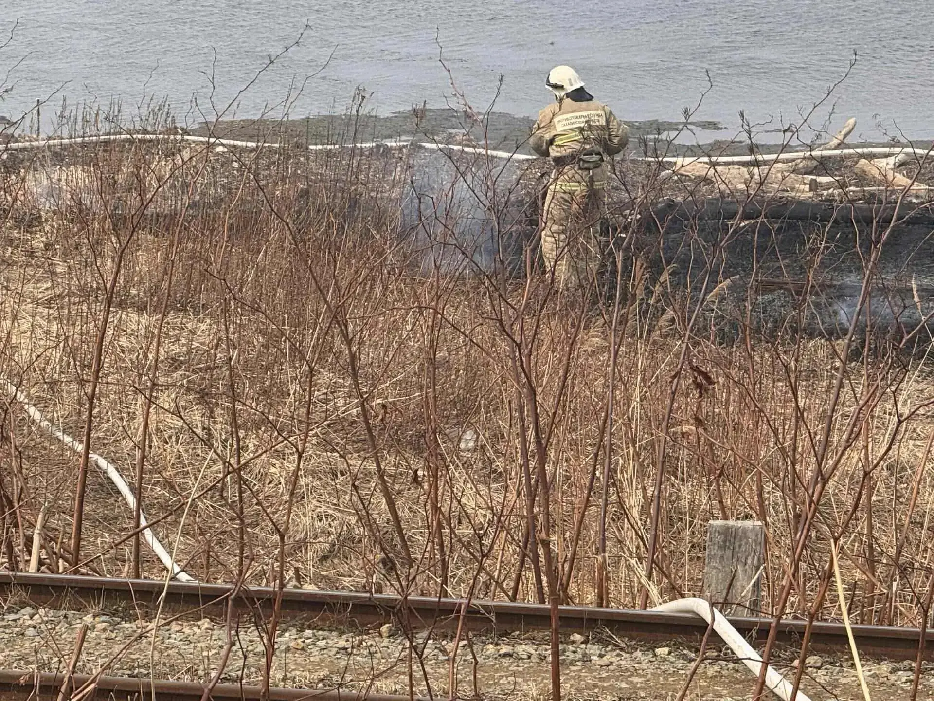 Сообщение о пожаре по адресу: г. Невельск, ул. Победы, 19, поступило в диспетчерскую службу Невельского пожарно-спасательного отряда 2 апреля в 15:19. Через 5 минут пожарные прибыли на место происшествия. К этому времени на пустыре возле дома горела сухая трава и мусор. Площадь возгорания составила 10 кв. м.