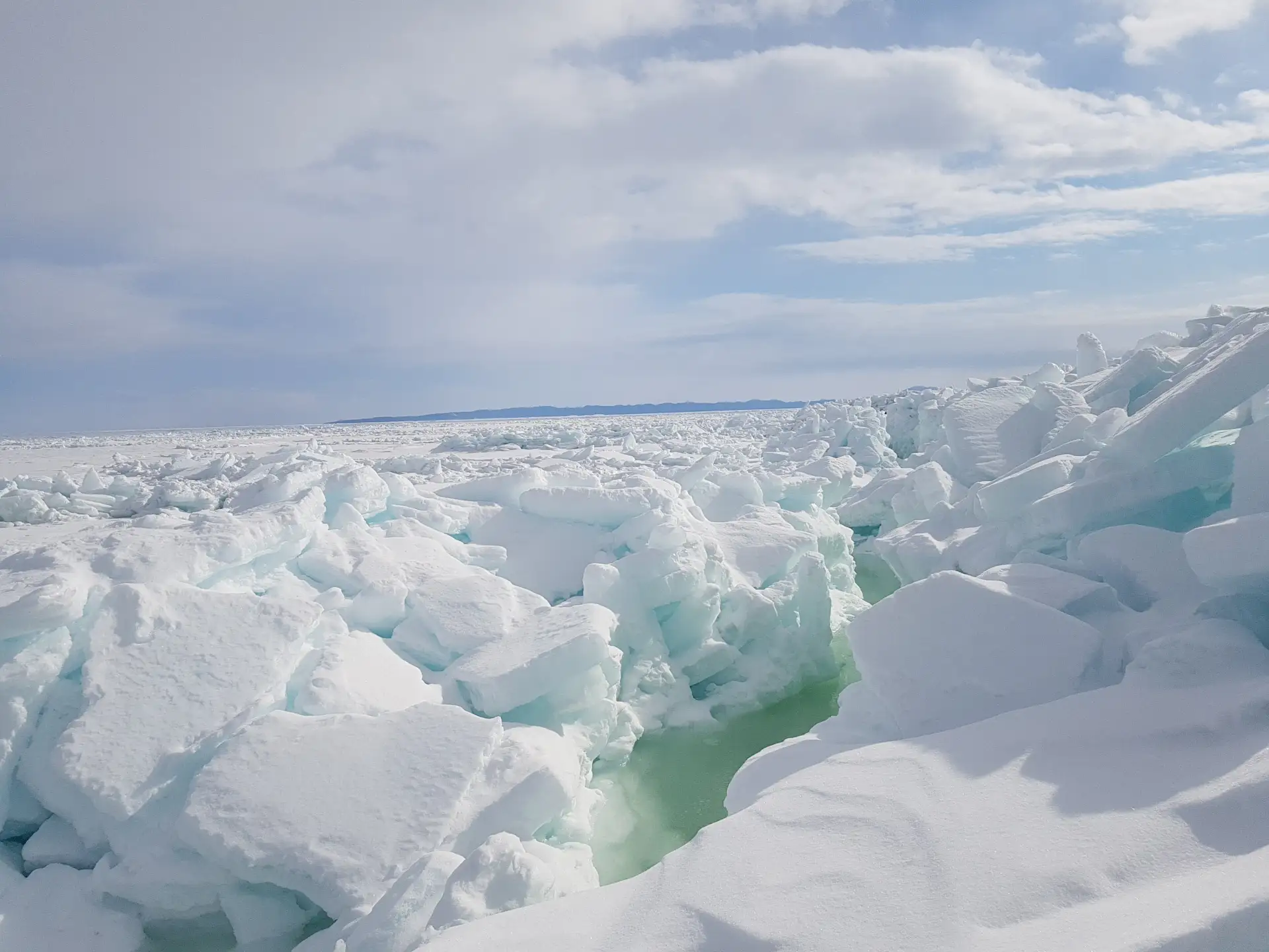 🧊 В заливе Мордвинова и на других участках юго-восточного побережья Сахалина под воздействием отжимного ветра возможно образование трещин и разводий. Прибрежный лед неустойчив.