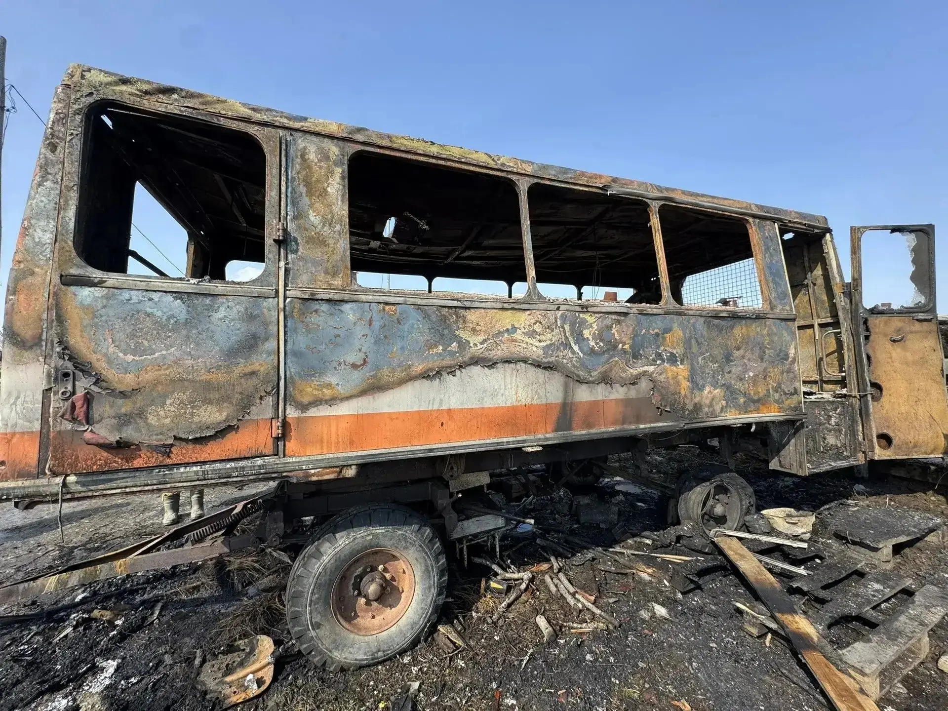 Пожарные прибыли на место в 17:42. К моменту прибытия горел заброшенный автобус на площади 20 квадратных метров.