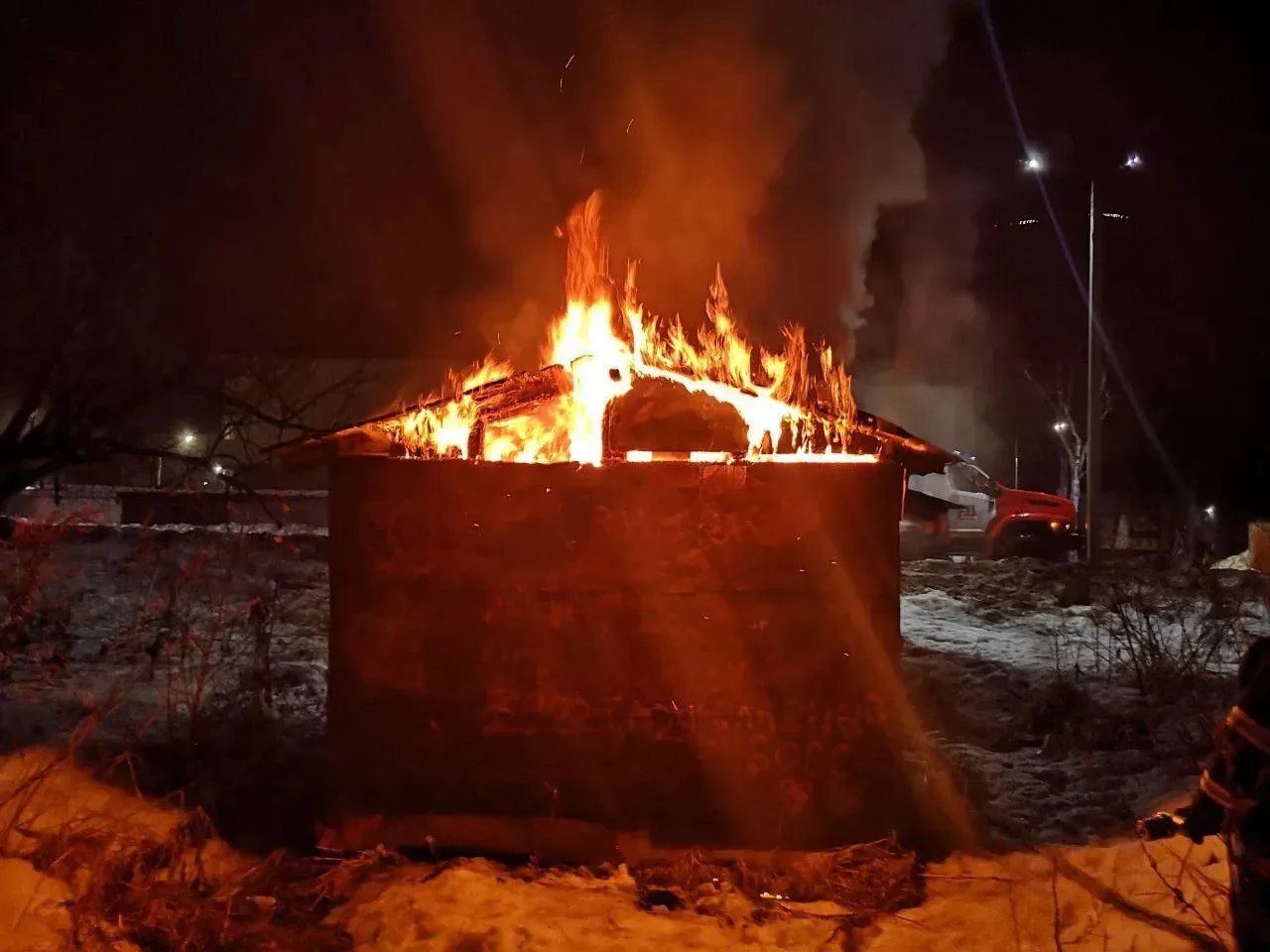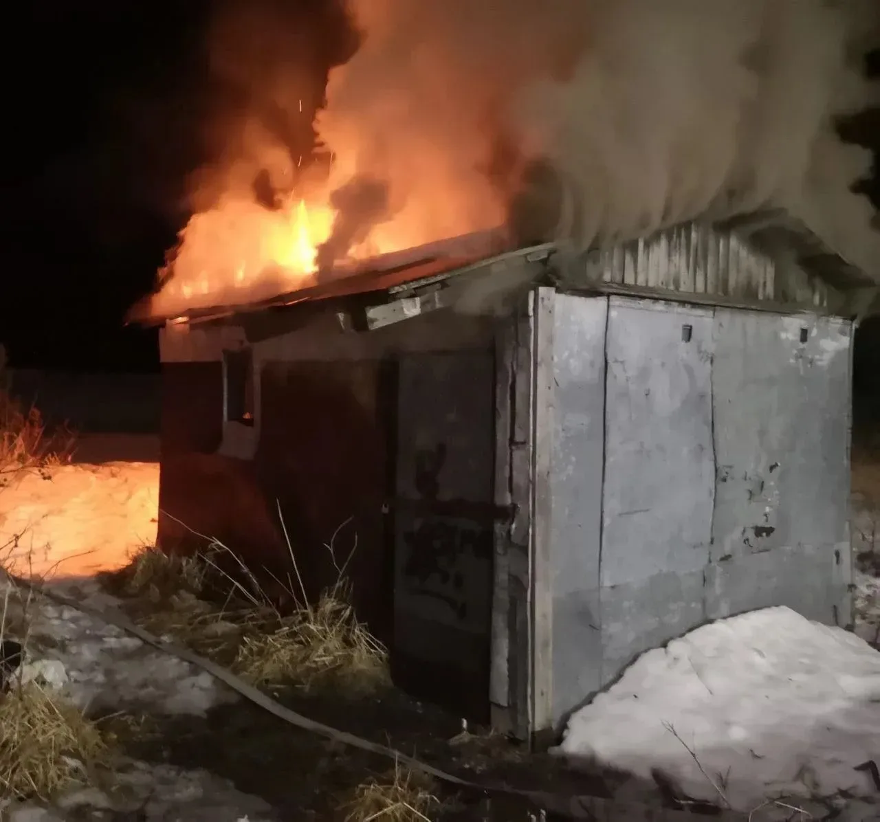 Пожарные прибыли на место в 06:08. К моменту прибытия горел гараж на площади 9 квадратных метров.