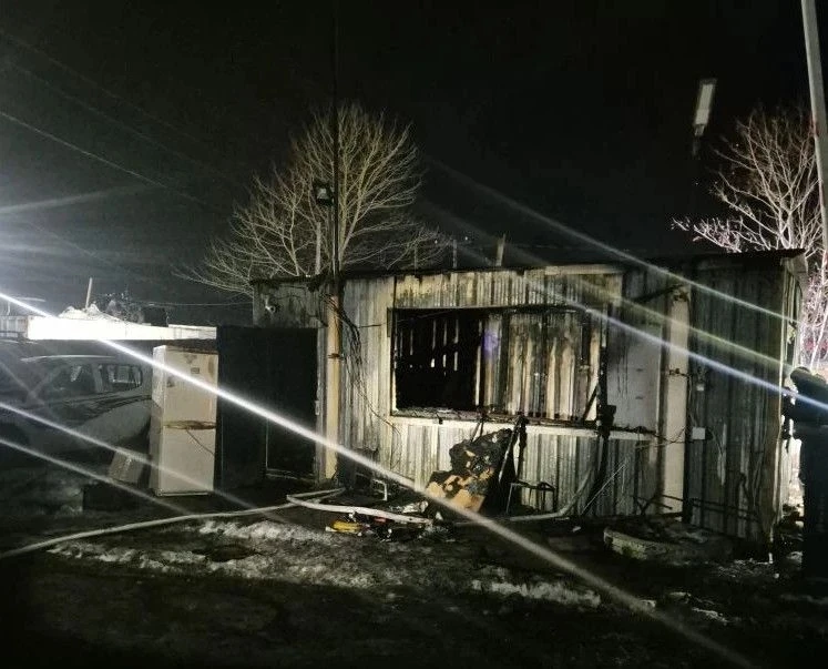 Пожарные прибыли на место в 00:39. К моменту прибытия открытым пламенем горело отдельно стоящее строение контейнерного типа (пункт охраны) на площади 12 квадратных метров.