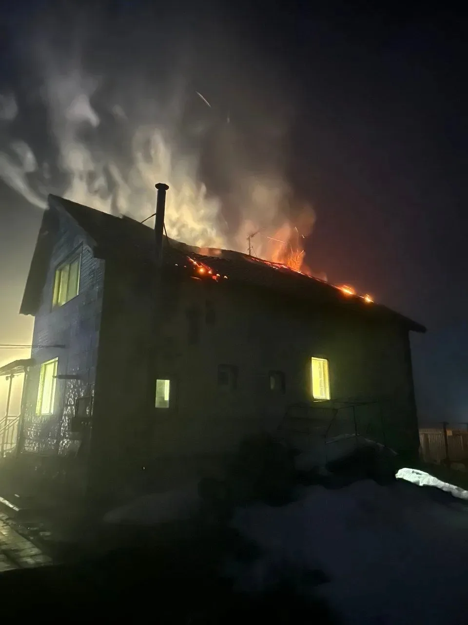 Через 6 минут пожарные прибыли на место происшествия. К этому времени открытым пламенем горело чердачное помещение одноэтажного частного дома. Площадь возгорания составила 1,5 кв. метра.