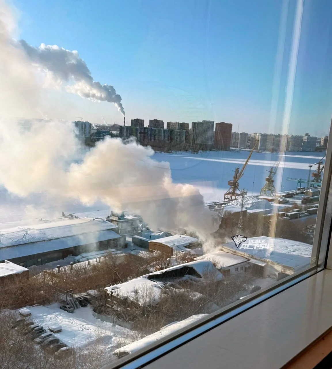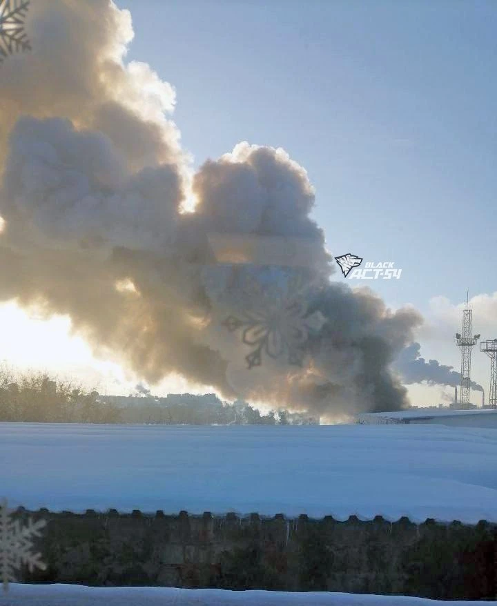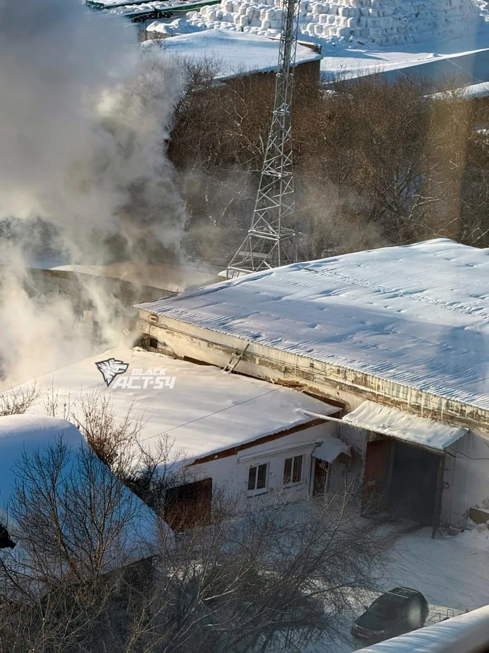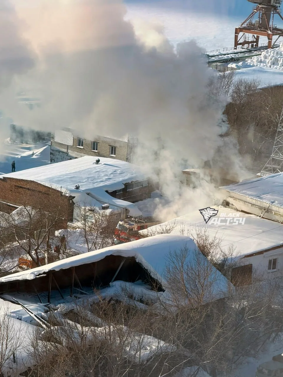 ⚡️ Обновлено: в ГУ МЧС по НСО сообщили, что пожар локализован на площади 1,8 тысяч м². Ликвидацию возгорания осложняют горючие материалы: пожарным приходится эвакуировать пиломатериалы из сооружения. Никто не пострадал, огонь продолжают тушить.