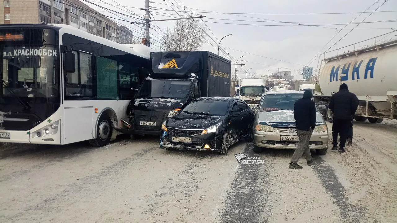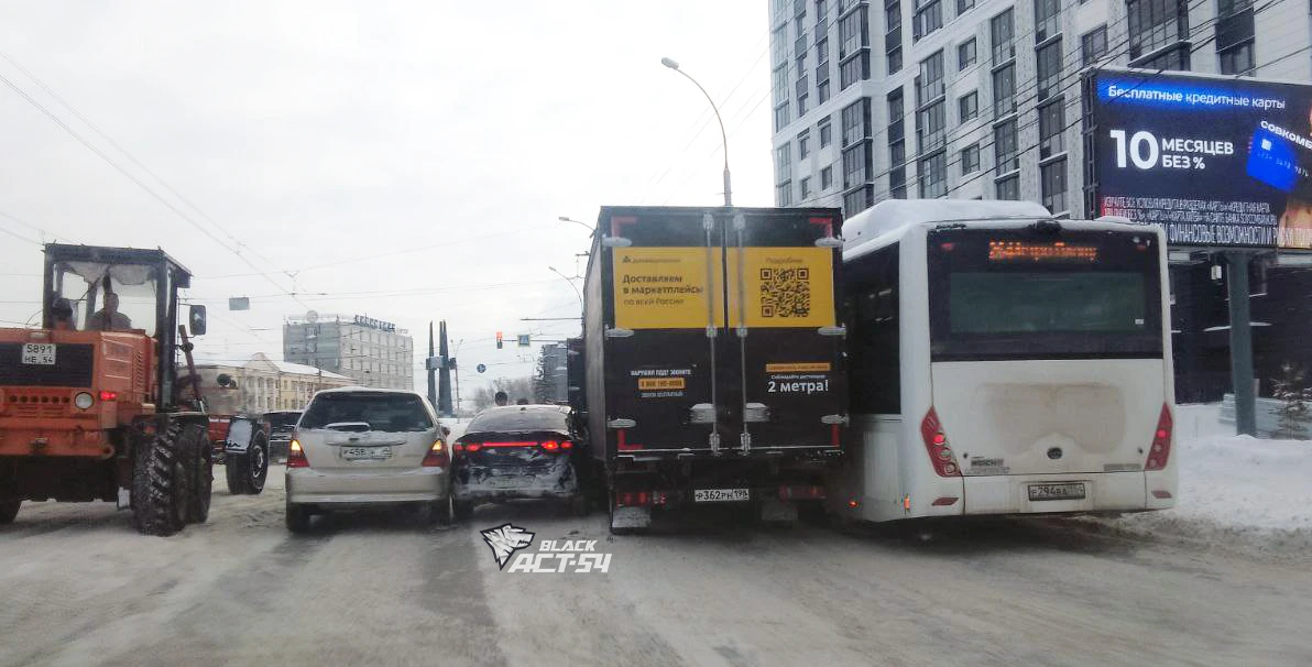 Водители минивэна Honda Odyssey, седана Kia Rio, ГАЗели и пассажирского автобуса №264 не поделили дорогу на улице Сибиряков-Гвардейцев перед одноимённой площадью 🚗🛻🚌