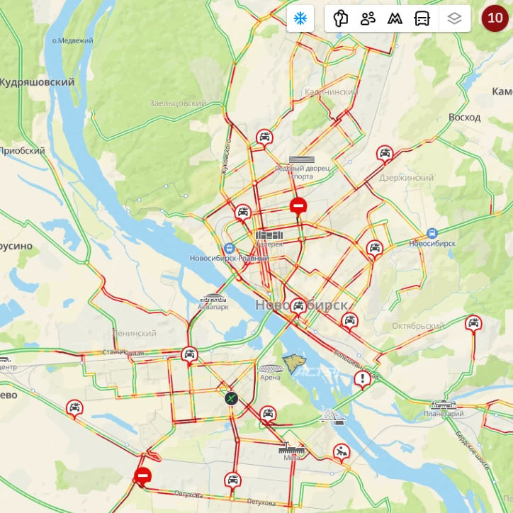 😡 10-балльные пробки сковали Новосибирск в первый же рабочий день после затяжных каникул