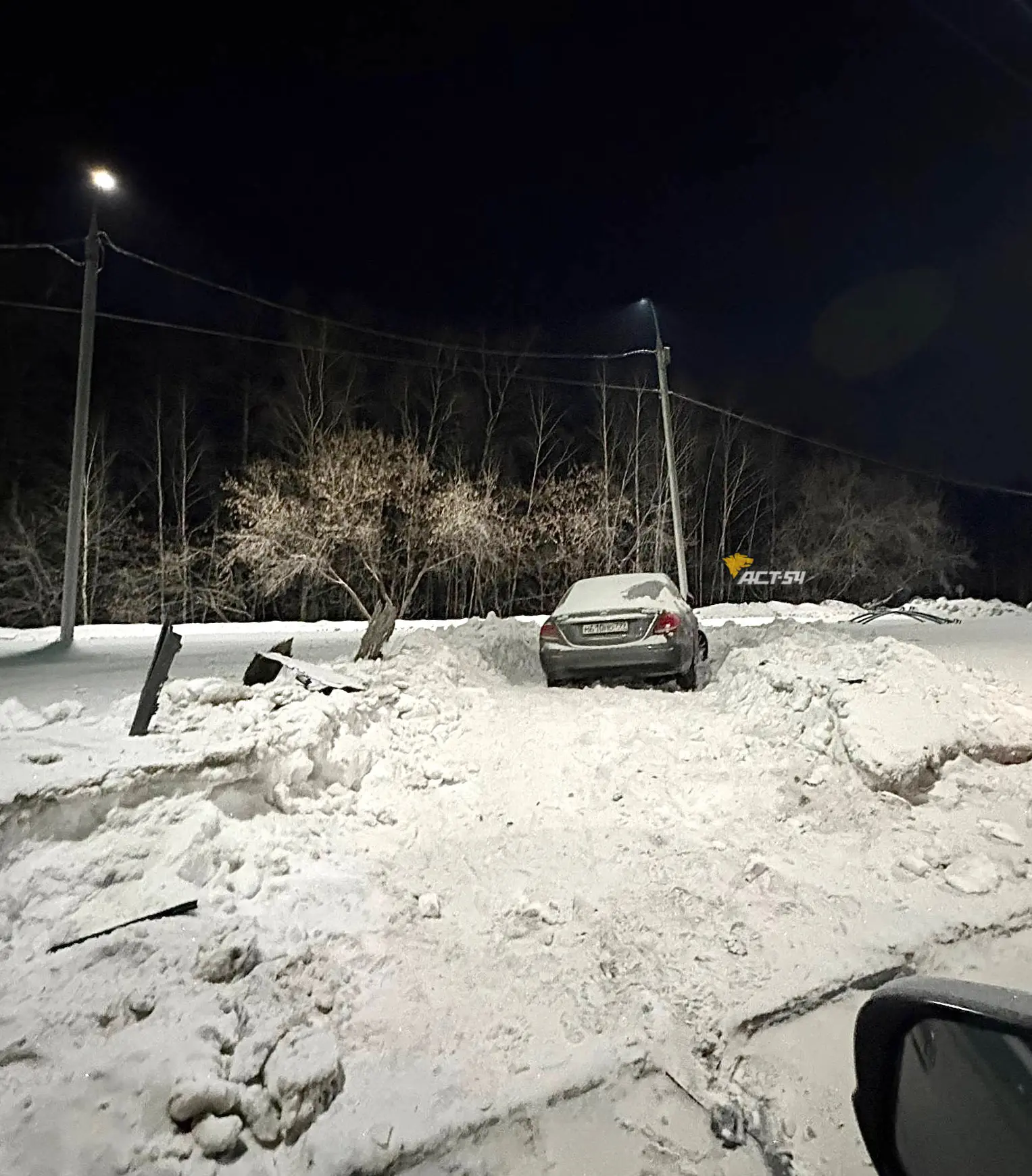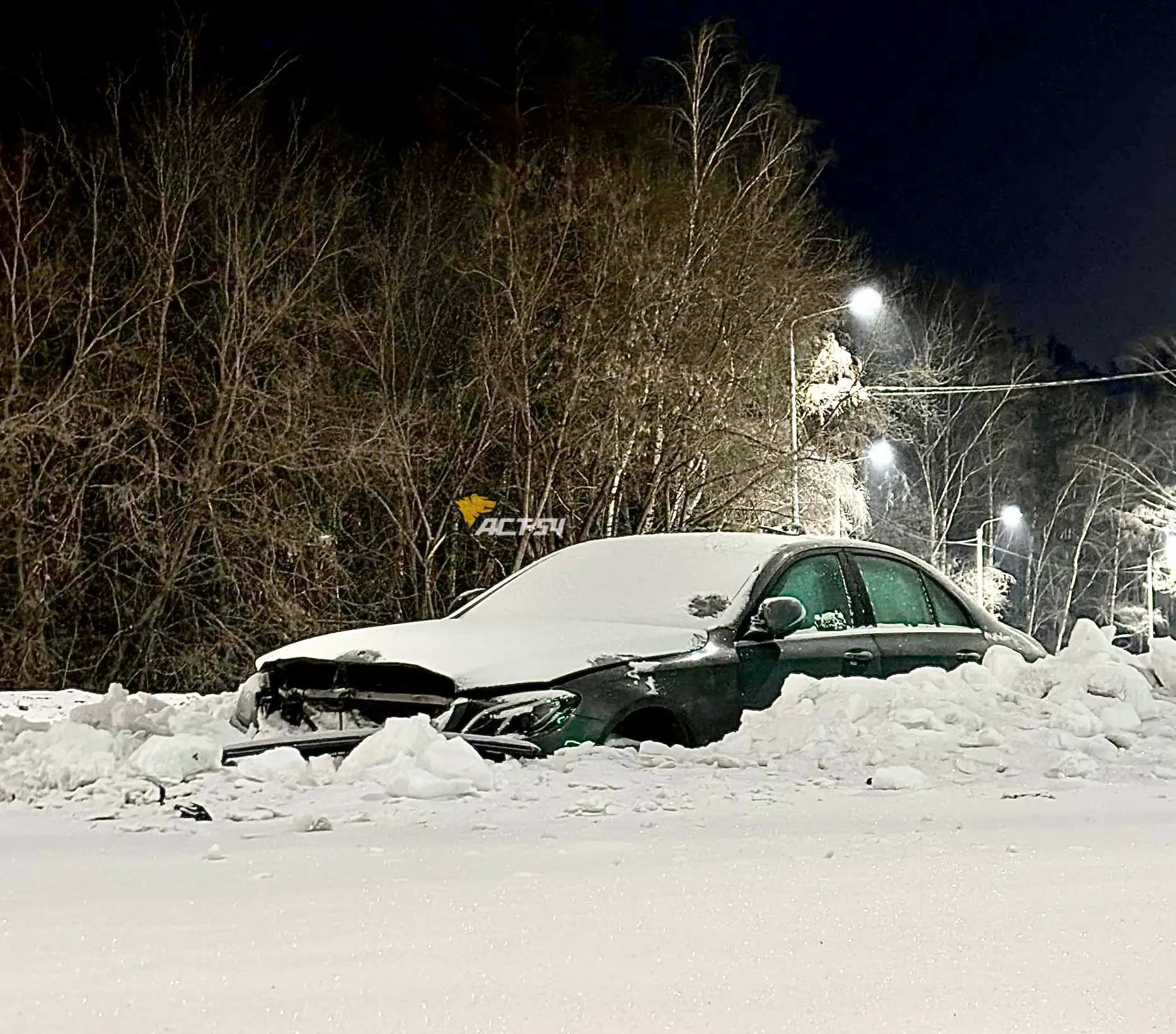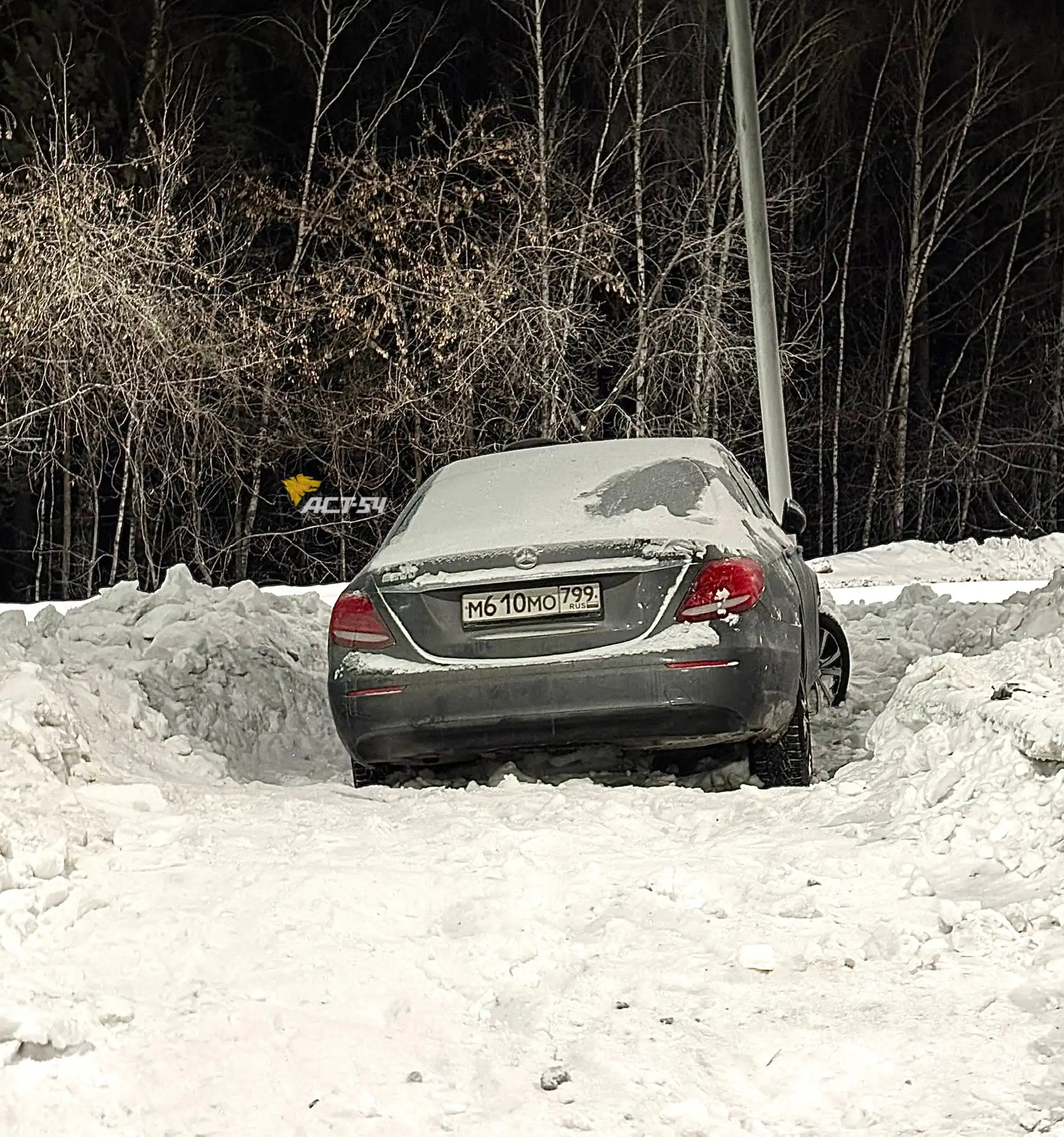 🤷🏻♂️ Каршеринговый седан Mercedes-Benz с разбитой мордой уже больше трёх суток остаётся брошенным в сугробе на разделительной полосе Бердского шоссе, а именно на выезде из Академгородка по Университетскому проспекту