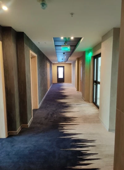 На первом этаже трёхзвёздочной гостиницы будут расположены вестибюль, служба приёма и размещения, лобби-бар, а также пространство для отдыха и ожидания.