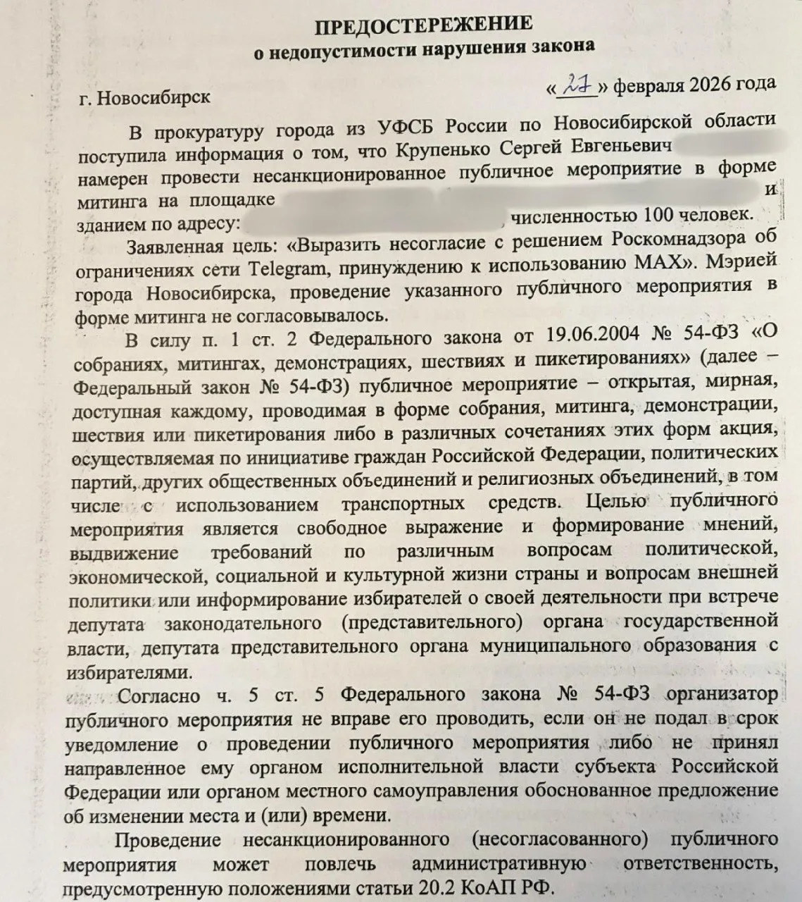 🪧🚫 Новосибирцев предупредили о недопустимости пров...