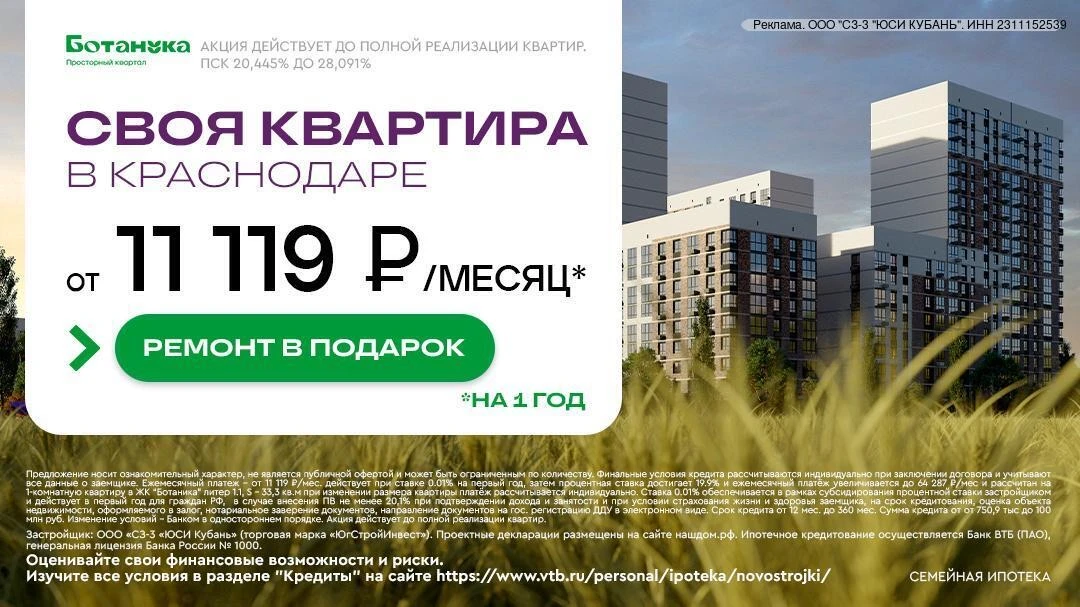 🌳 КВАРТИРЫ НА ЮГЕ ОТ 11 119 ₽/МЕСЯЦ | 1,5 ЧАСА ДО МОРЯ