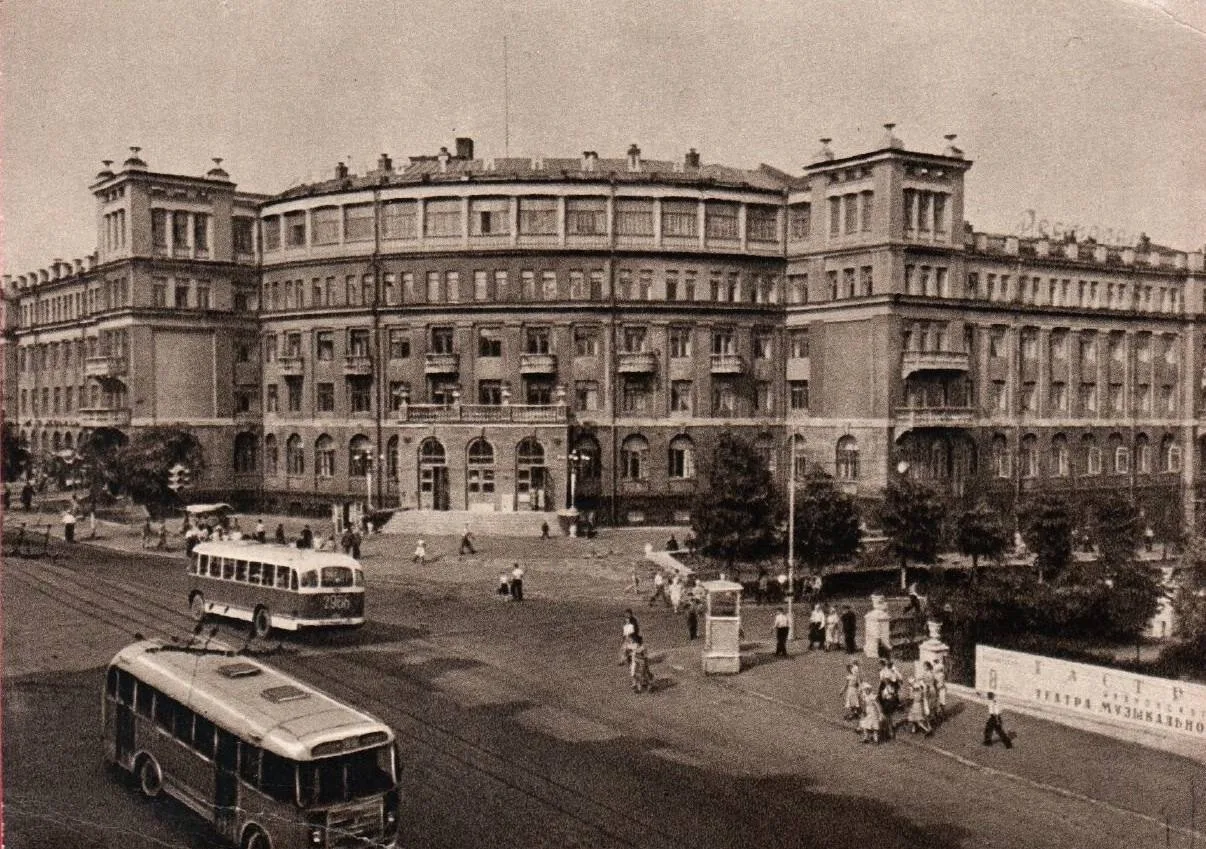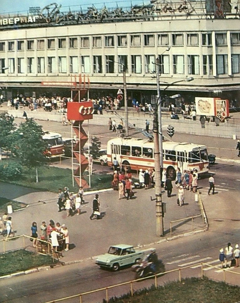 Вид на Центральный универмаг на перекрестке улицы Воровского и Октябрьского проспекта.