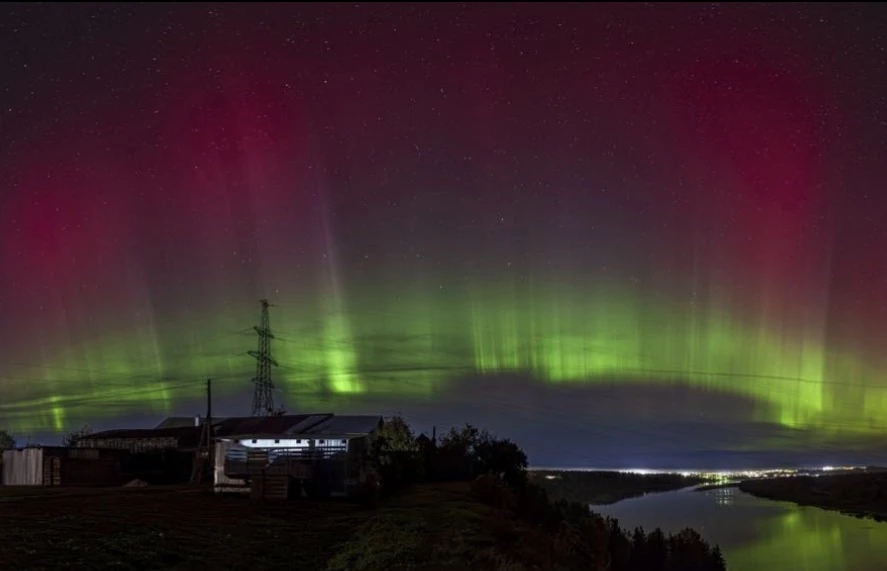Полярное сияние над Котельничем, Кировская область. 📸 Сергей Шестаков