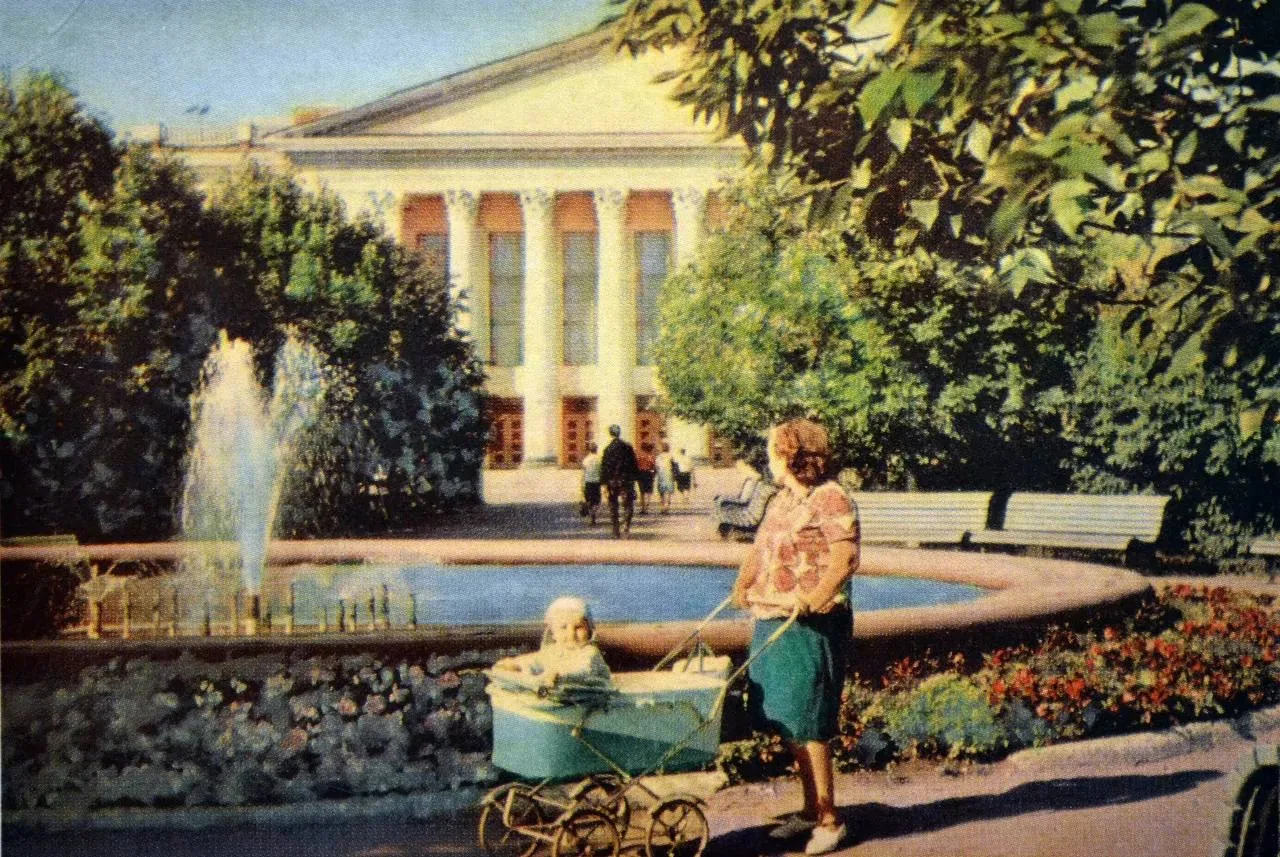Вид на Драмтеатр и сквер с фонтаном на Театральной площади.
