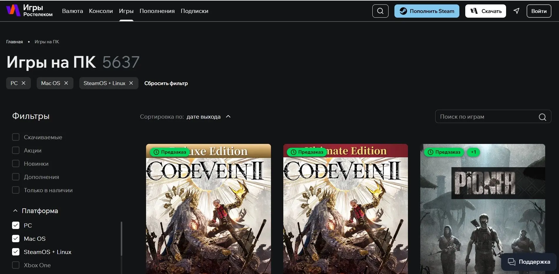 Контент на платформе будет регулярно обновляться. Здесь будут появляться эксклюзивные продукты и предложения. Кроме того, сегодня появился официальный предзаказ шутера Pioner. На данный момент это единственная отечественная онлайн-площадка, где можно купить эту новинку от GFAGames. Всего доступно 6 тыс. игр для ПК, PlayStation и Xbox.