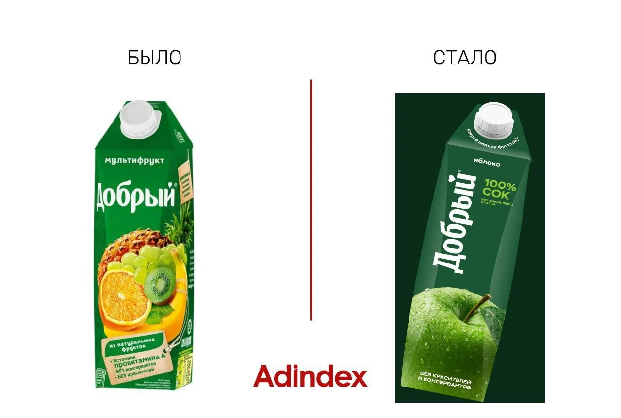 Студия Лебедева разработала новый дизайн для упаковки сока «Добрый». Основой визуального стиля стало гиперреалистичное изображение фруктов