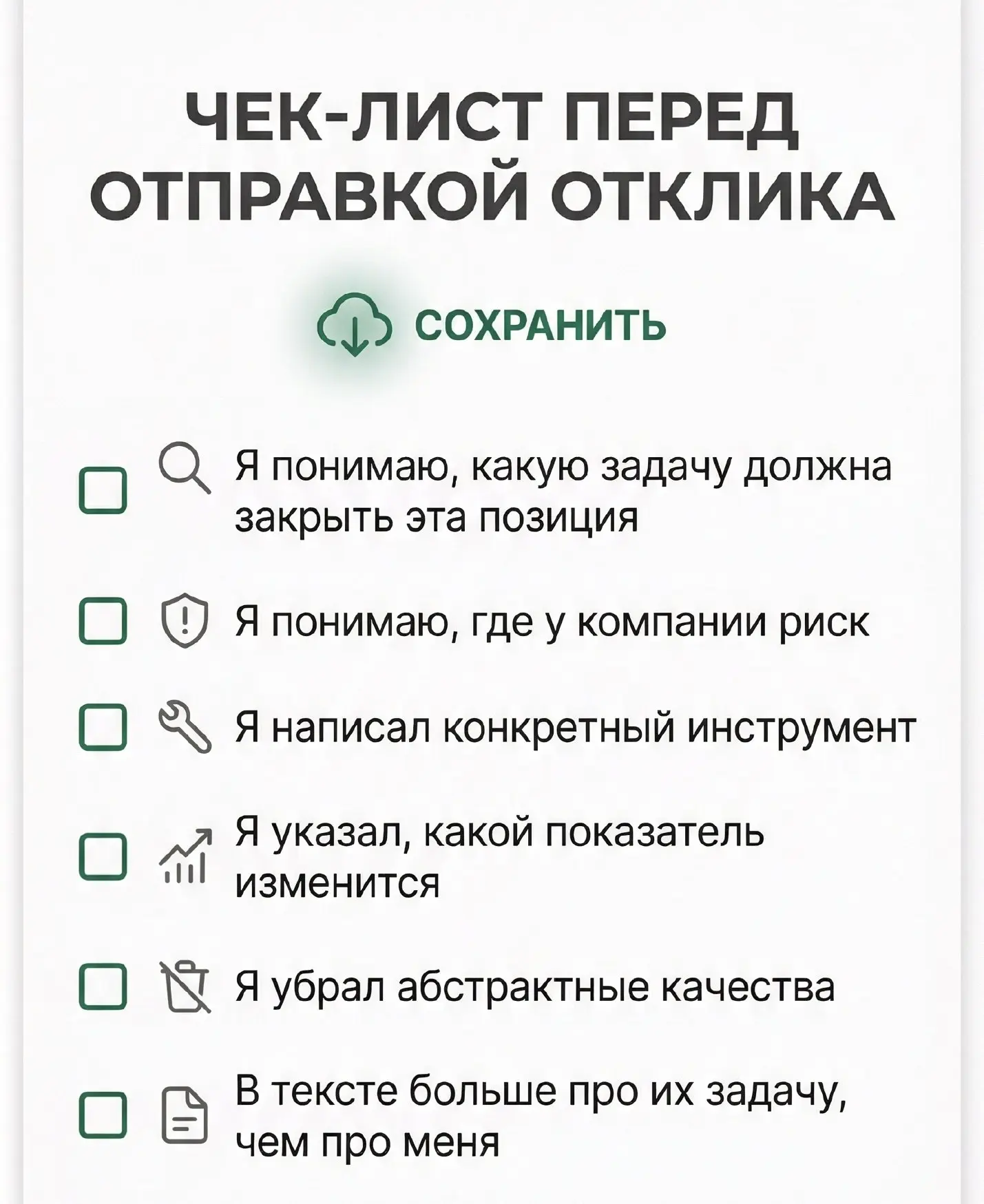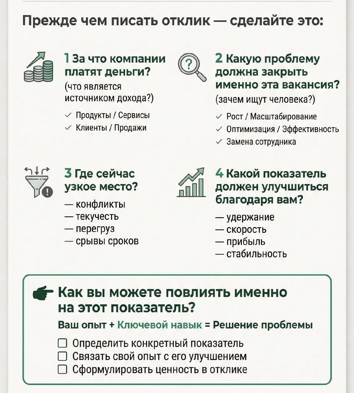 И скриньте алгоритм идеального отклика на вакансии:)