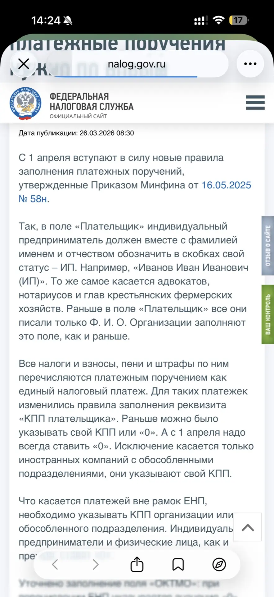 👉 В поле «Плательщик» кроме ФИО нужно в скобках указать свой статус