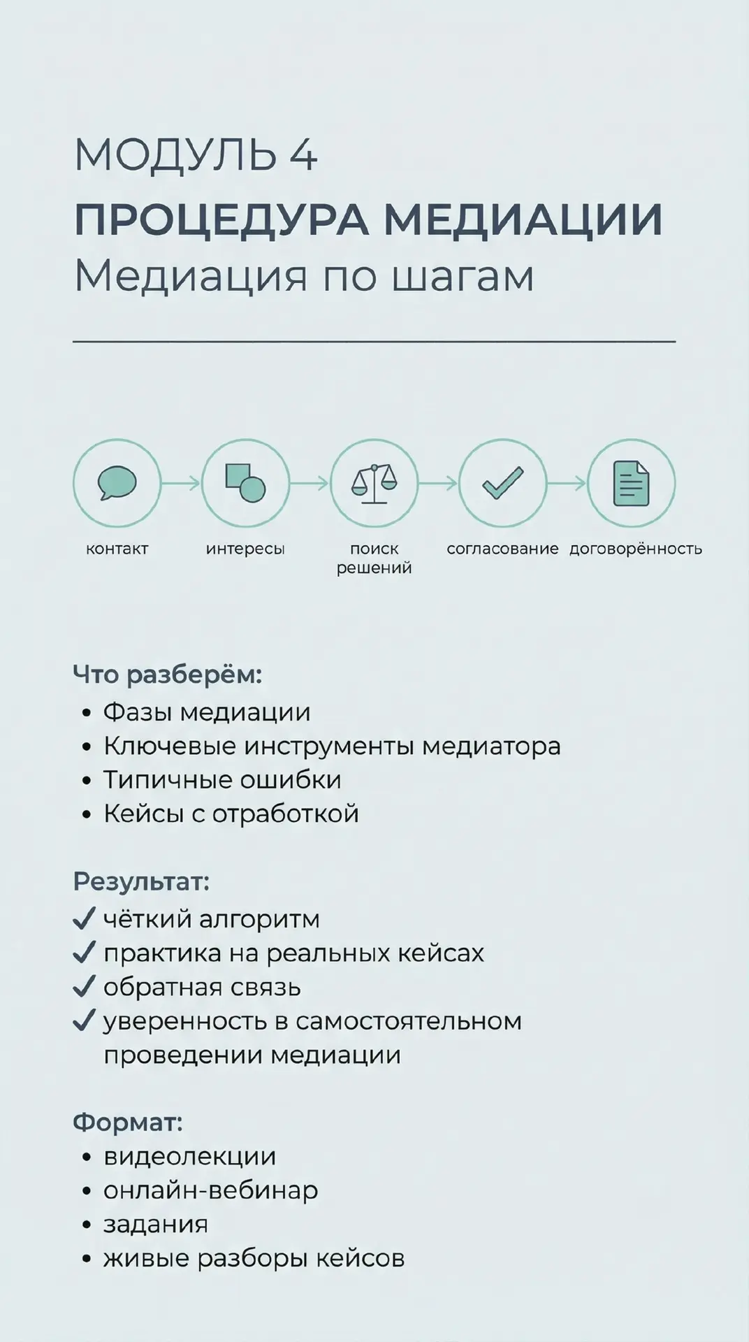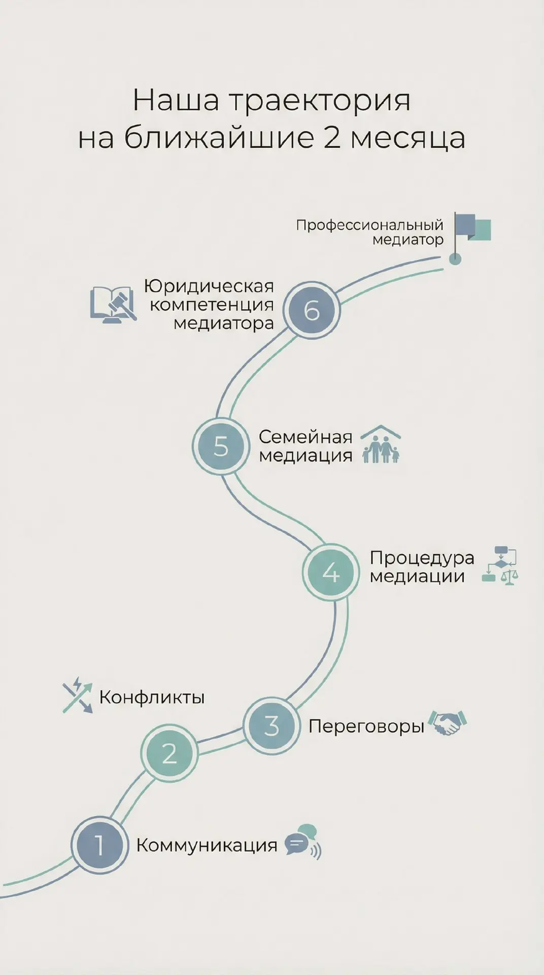 Уже послезавтра мы встречаемся на оргвебинаре, и будем в течении 2х месяцев осваивать всю эту траекторию, чтобы 25 апреля получить свои дипломы профессионального медиатора и открыть для себя возможности новой профессии.
