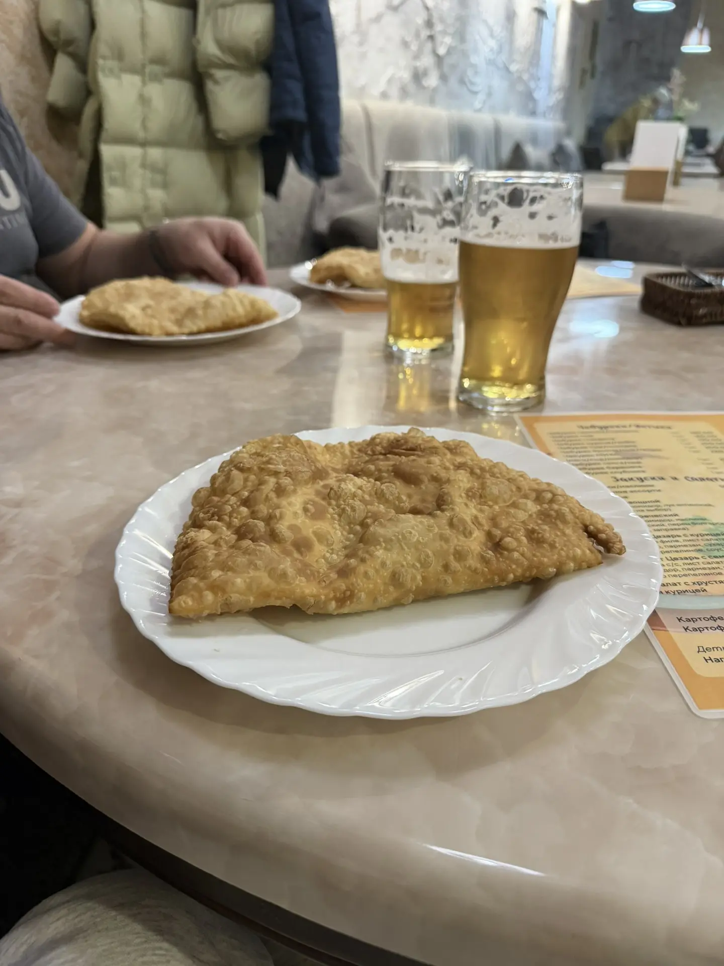 Тесто действительно хорошее, сок внутри есть, но баранина пахла сильно, это тебе не дагестанские бараны, зелени не было. С сыром очень соленый, а вот свино-говяжий вкусный. Сильно лучше, чем вчера (но любой будет сильно лучше, чем вчера) но еще раз я бы не пошла.