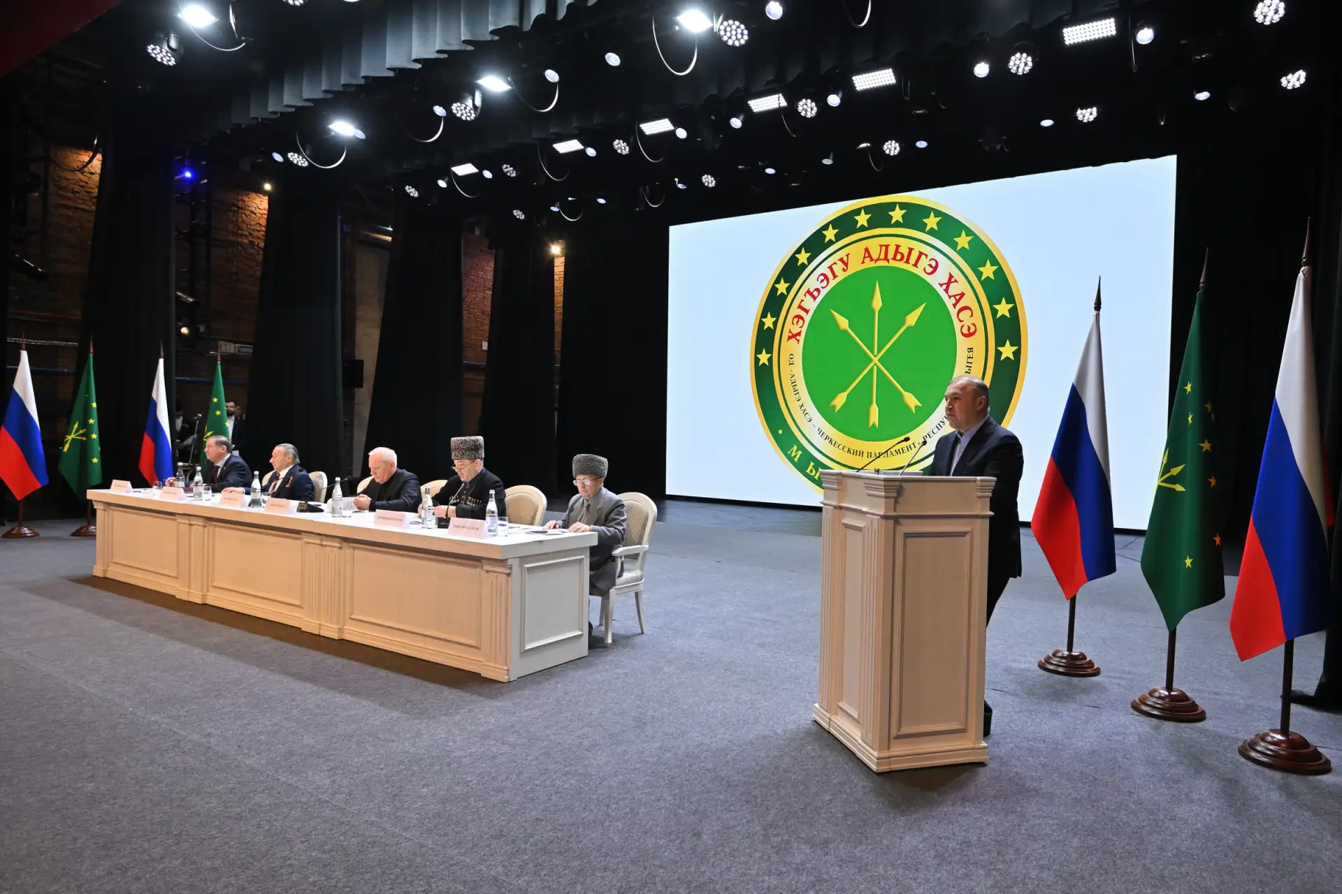 Перед собравшимися также выступил председатель Госсовета – Хасэ РА Владимир Нарожный. После торжественного собрания состоялся большой праздничный концерт мастеров искусств Республики Адыгея.