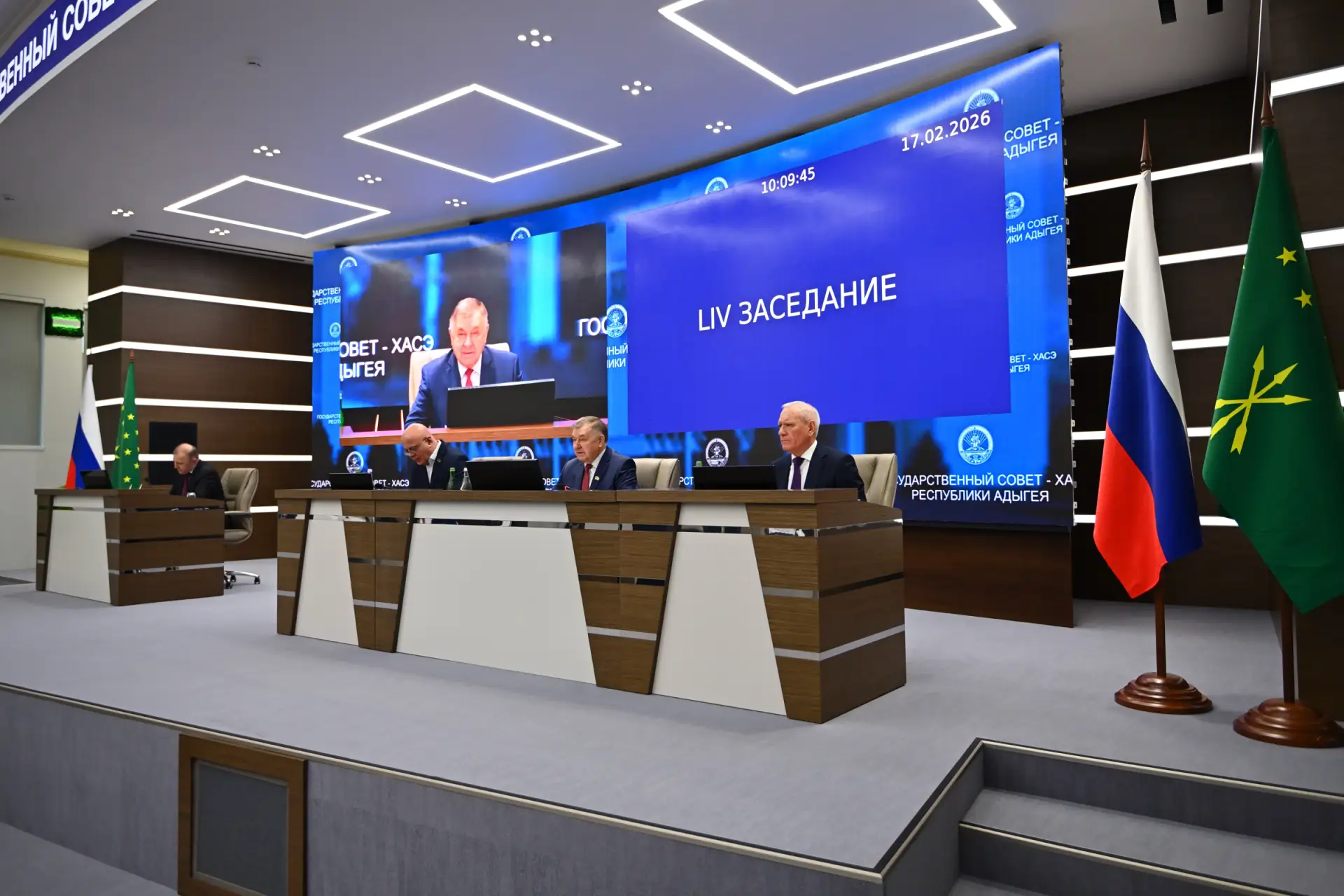 Глава Адыгеи Мурат Кумпилов принял участие в LIV заседании Государственного Совета – Хасэ республики. Провёл сессию председатель ГСХ РА Владимир Нарожный.