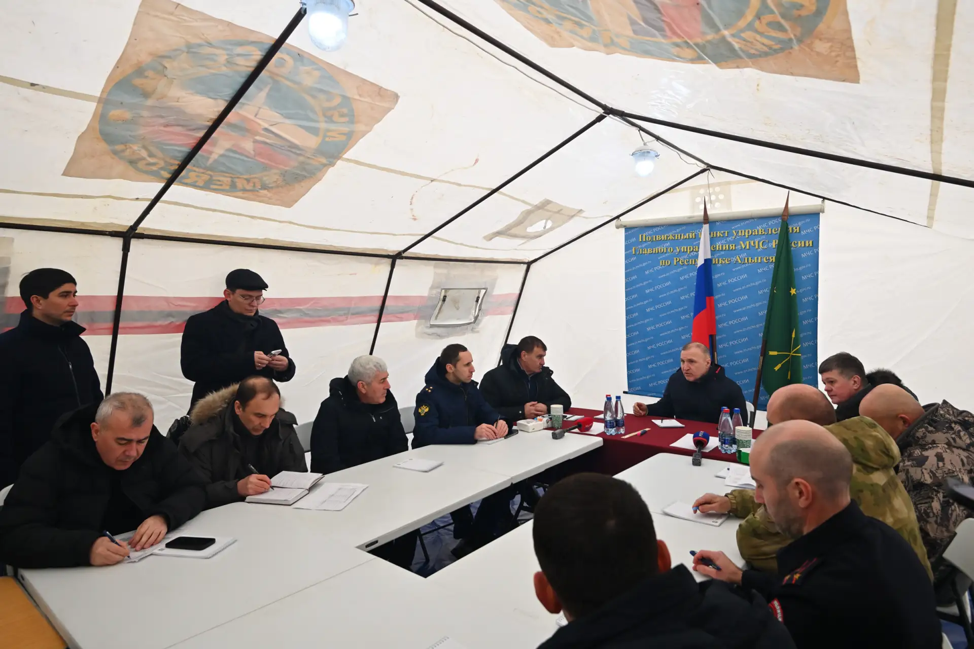 Оперативный штаб функционирует круглосуточно. Работу координирует глава Тахтамукайского района Аскер Савв. Я нахожусь с ним на связи, ежечасно получаю информацию о ходе работ и потребностях жителей пострадавших ЖК.