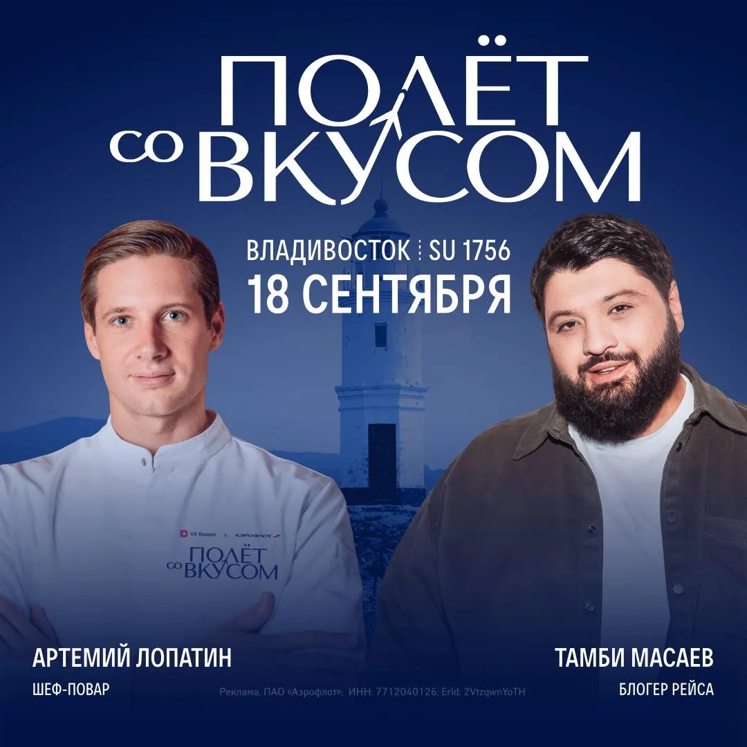 ✈️ 18 сентября на рейсе SU1756 Москва — Владивосток авторское меню представит бренд-шеф Артемий Лопатин (рестораны Jun и Kiyomi). Пробовать и оценивать будем вместе с блогером Тамби Масаевым.