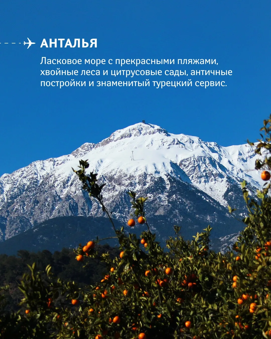 → В Анталью — из Екатеринбурга, Казани, Москвы, Нижнего Новгорода, Новосибирска, Самары, Санкт-Петербурга, Уфы.