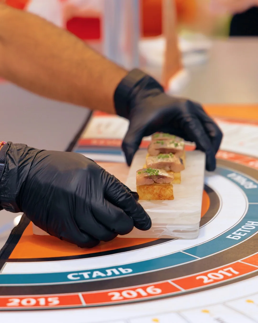 Смотрели вместе с героями пилотного выпуска — бренд-шефом White Rabbit Family Владимиром Мухиным и блогером Дмитрием Журавлёвым. На показе воссоздали атмосферу аэропорта с восточными акцентами — в духе Дубая, где проводились съёмки первой серии.