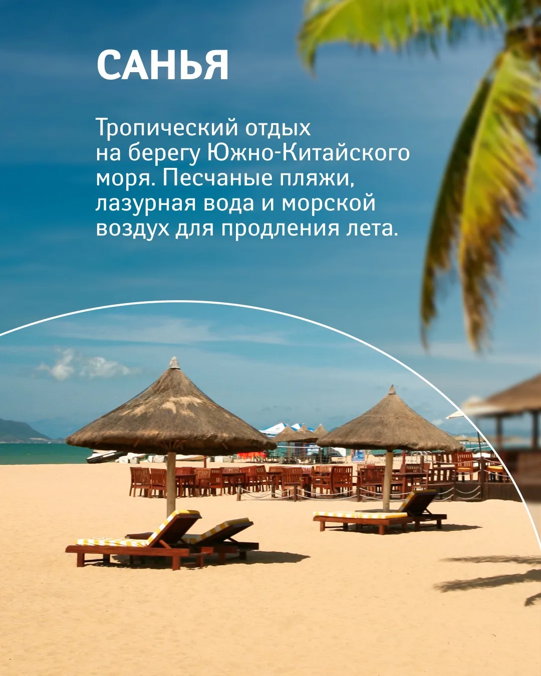 → В Санья — из Москвы, Санкт-Петербурга, Казани, Уфы, Красноярска, Екатеринбурга, Владивостока, Хабаровска, Новосибирска.