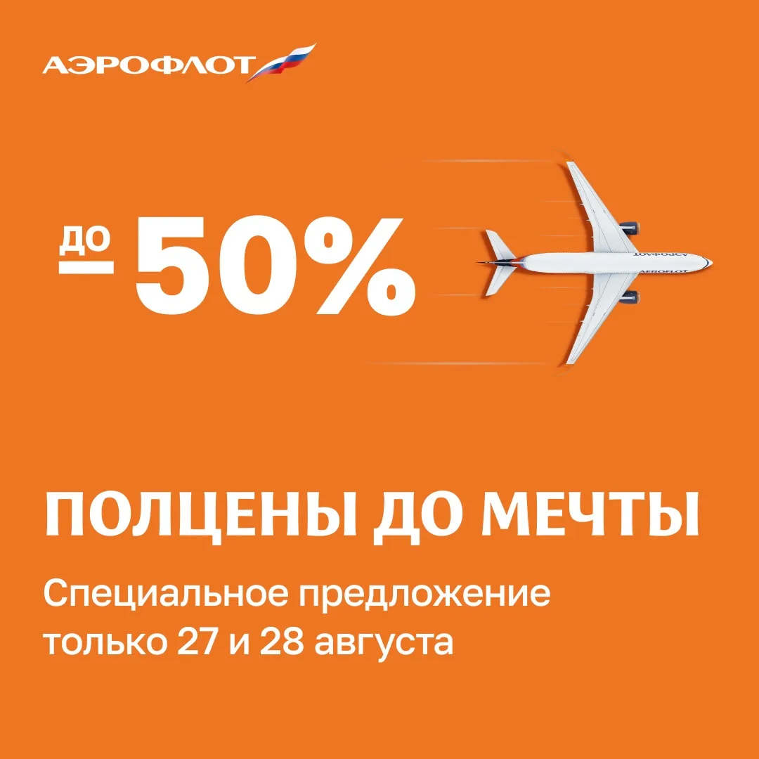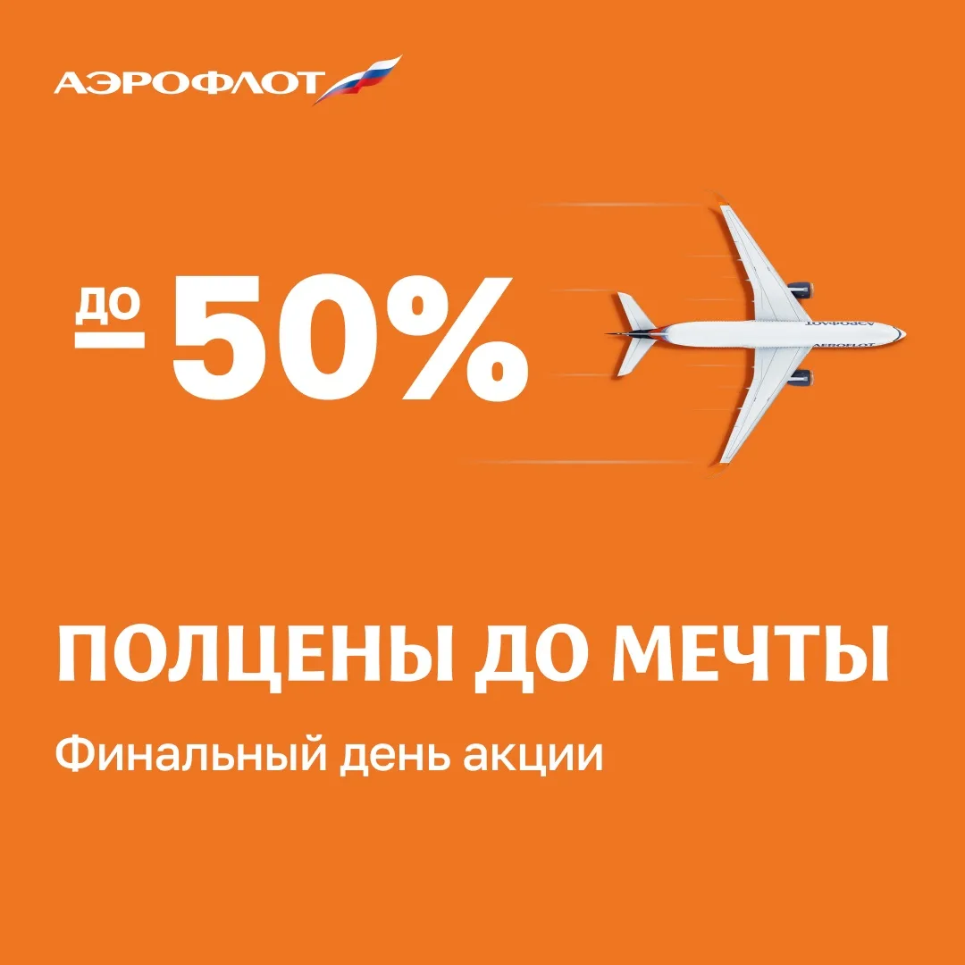 Успейте воспользоваться предложением на aeroflot.ru 💙 Количество акционных билетов ограничено. Субсидированные рейсы и «плоские» тарифы не участвуют.