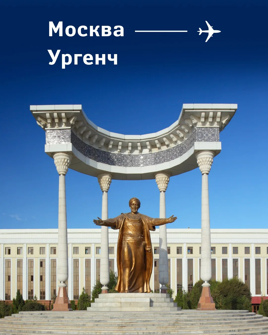 ➜ С 15 сентября добавляем в расписание рейсы в Ургенч. Летим из Москвы трижды в неделю: по понедельникам, четвергам и субботам.
