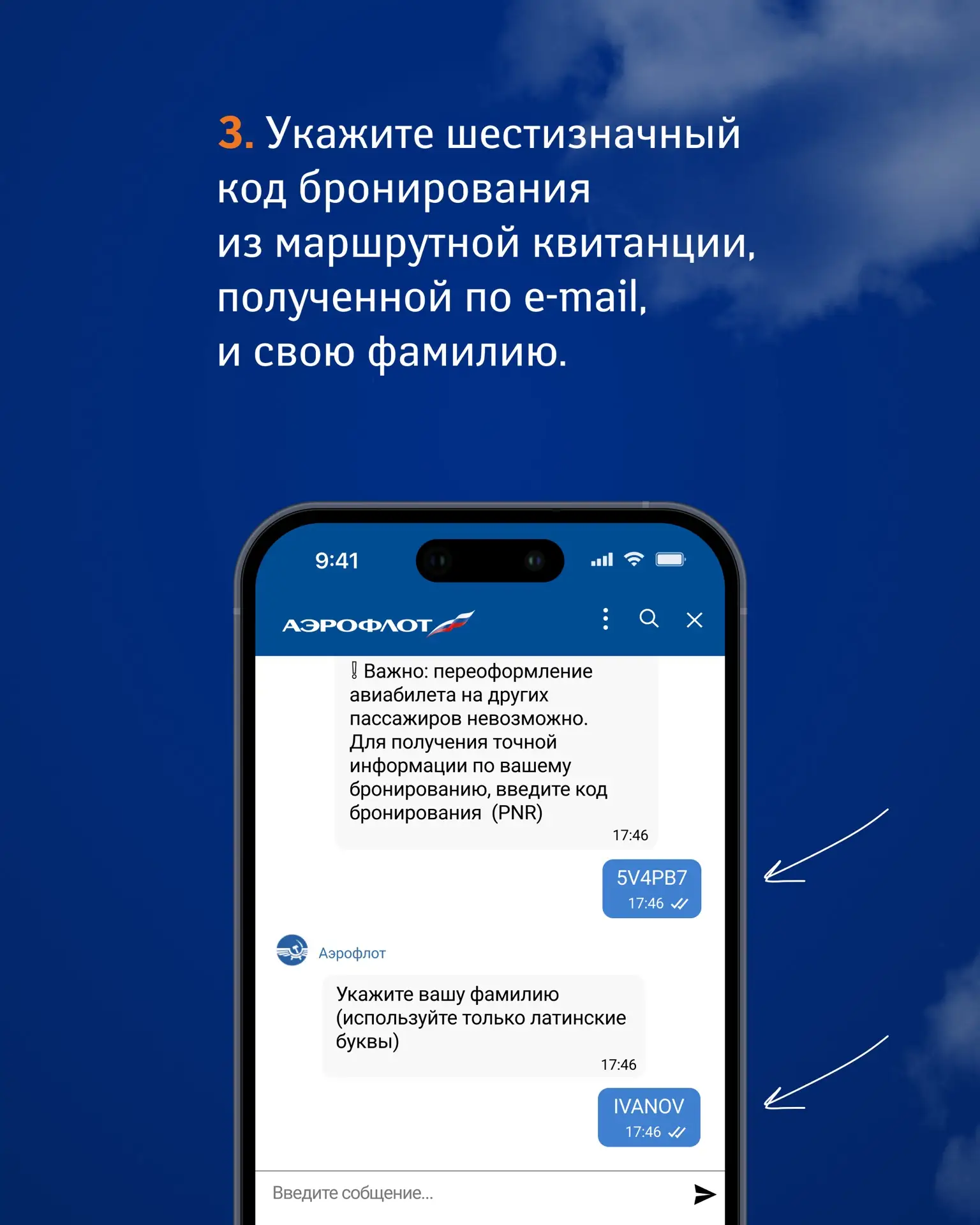 → Через чат-бота не получится переоформить чартерные, групповые билеты, билеты «Библио-Глобус» или ВПД.