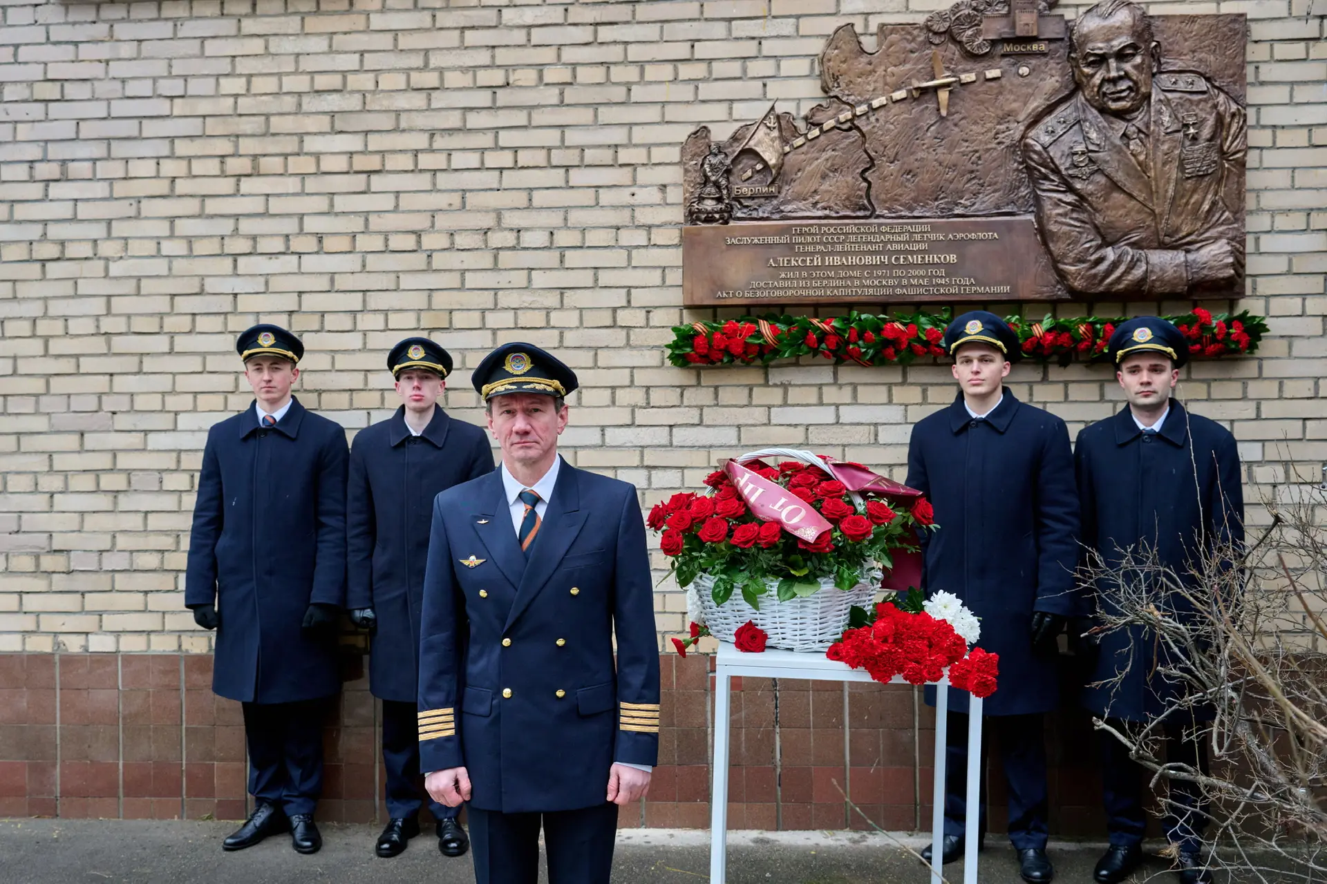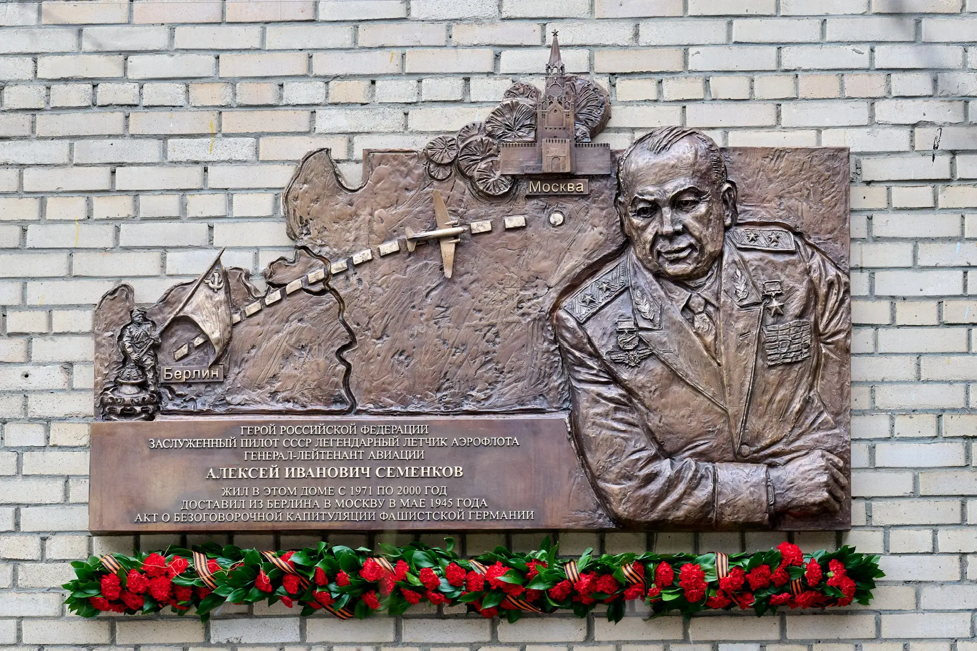Открыли мемориальную доску в честь легендарного пилота Алексея Ивановича Семенкова, командира экипажа Ли-2, который в мае 1945 года доставил в Москву Акт о безоговорочной капитуляции фашистской Германии.