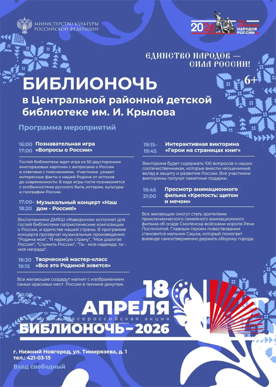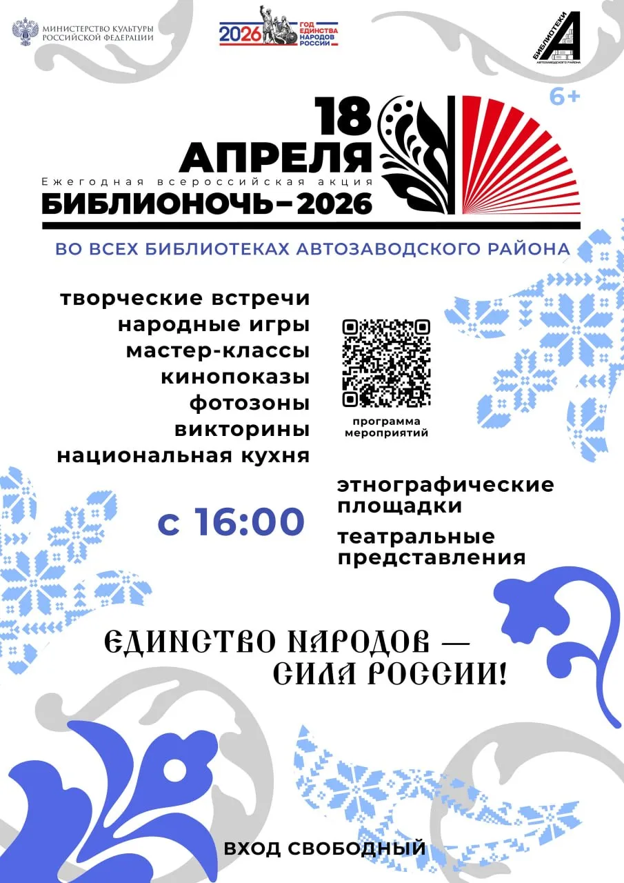 Программа по ссылке - https://lib-avt.ru/news/biblionoch-2026-edinstvo-narodov-sila-rossii