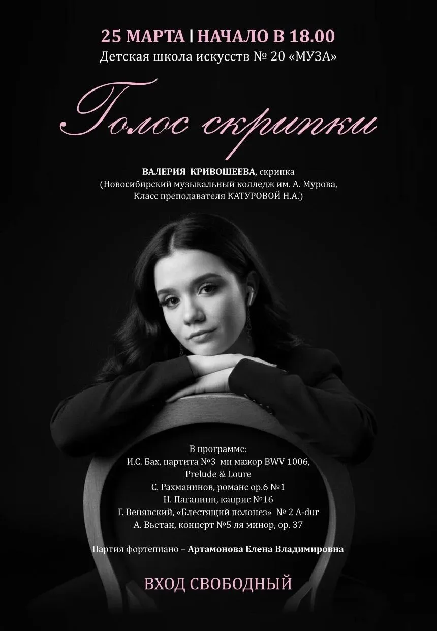 Выступит Валерия Кривошеева, скрипка (Новосибирский музыкальный колледж им. А. Мурова. Класс преподавателя Катуровой Н.А.