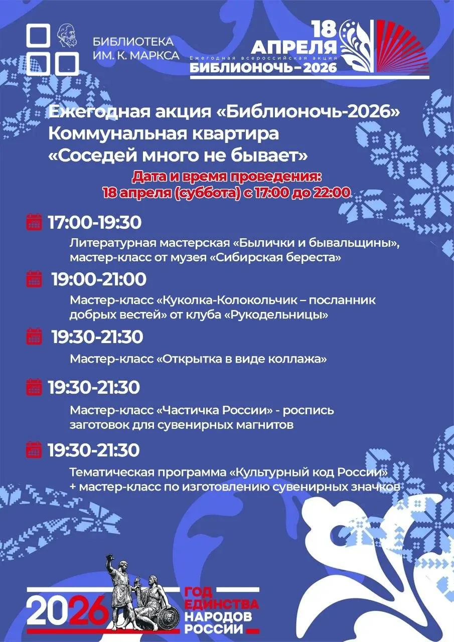 Программа по ссылке - https://kulturansk.ru/news/afisha-aktsii-biblionoch-2026/