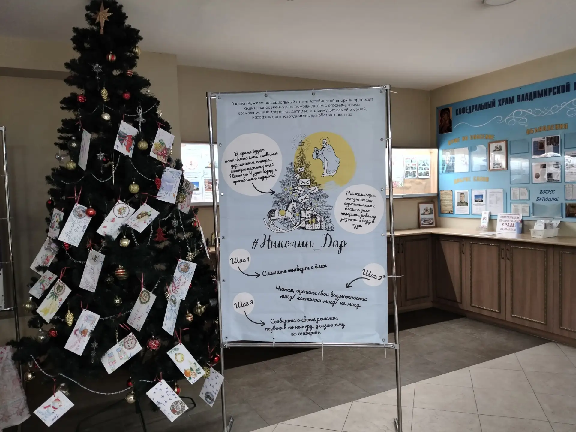 ✨Ахтубинская епархия сообщает о запуске ежегодного благотворительного проекта. Ëлочка с первыми письмами на имя Николая Чудотворца установлена в кафедральном соборе Владимирской иконы Божией Матери.