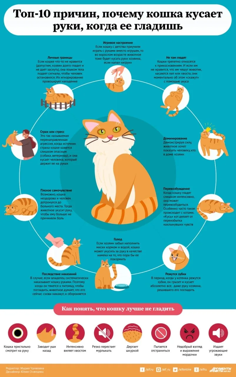 10 причин для «кусь». Почему кошка кусает руки, когда ее гладишь?